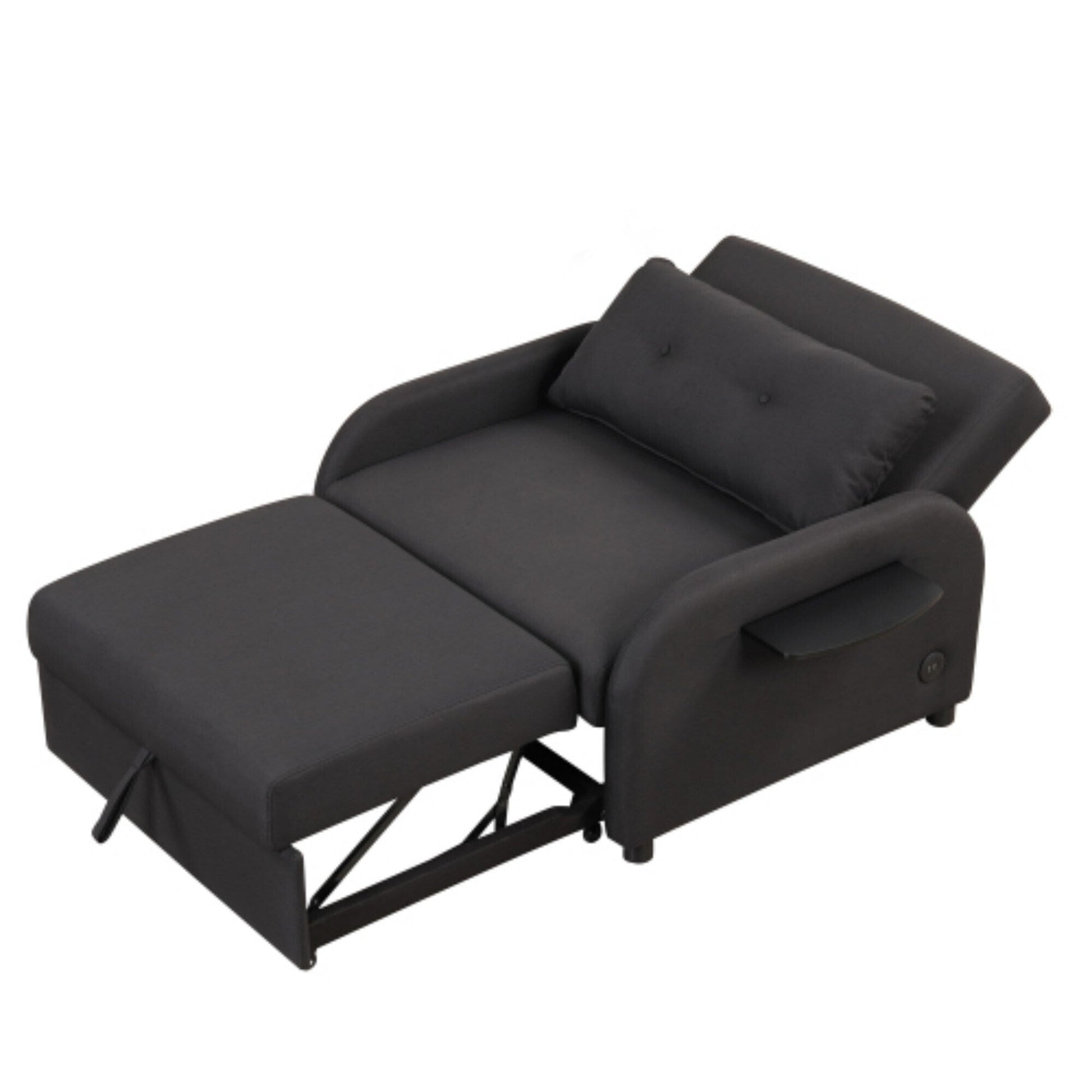 Maximisez confort et fonctionnalité avec ce canapé-lit gigogne 3-en-1 polyvalent. Idéal pour les petits espaces, il se transforme facilement d'un canapé chic en un lit confortable pour vos invités, offrant une solution élégante et pratique pour votre intérieur. Doté d'une table à oreilles pliable et de deux ports USB de chaque côté, ce canapé-lit permet de recharger facilement vos appareils pendant que vous vous détendez. Son dossier réglable offre trois angles d'inclinaison différents, tandis que ses coussins amovibles, recouverts d'un doux lin, offrent un confort optimal. Avec son rembourrage en éponge haute densité et élastique et sa structure en fer robuste, ce canapé-lit gigogne est conçu pour un confort durable. Disponible en trois coloris élégants : gris, noir et beige, ce canapé-lit gigogne s'intègre parfaitement à n'importe quelle pièce.