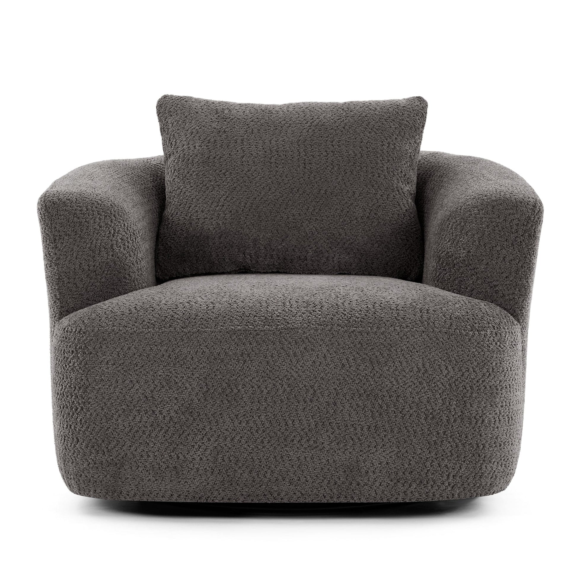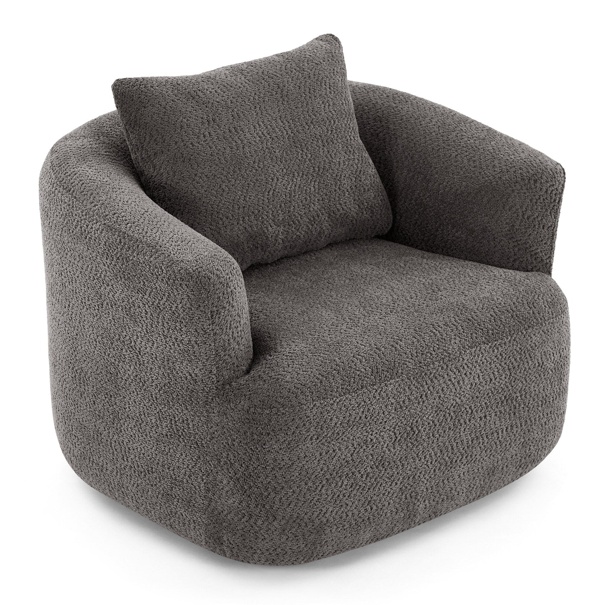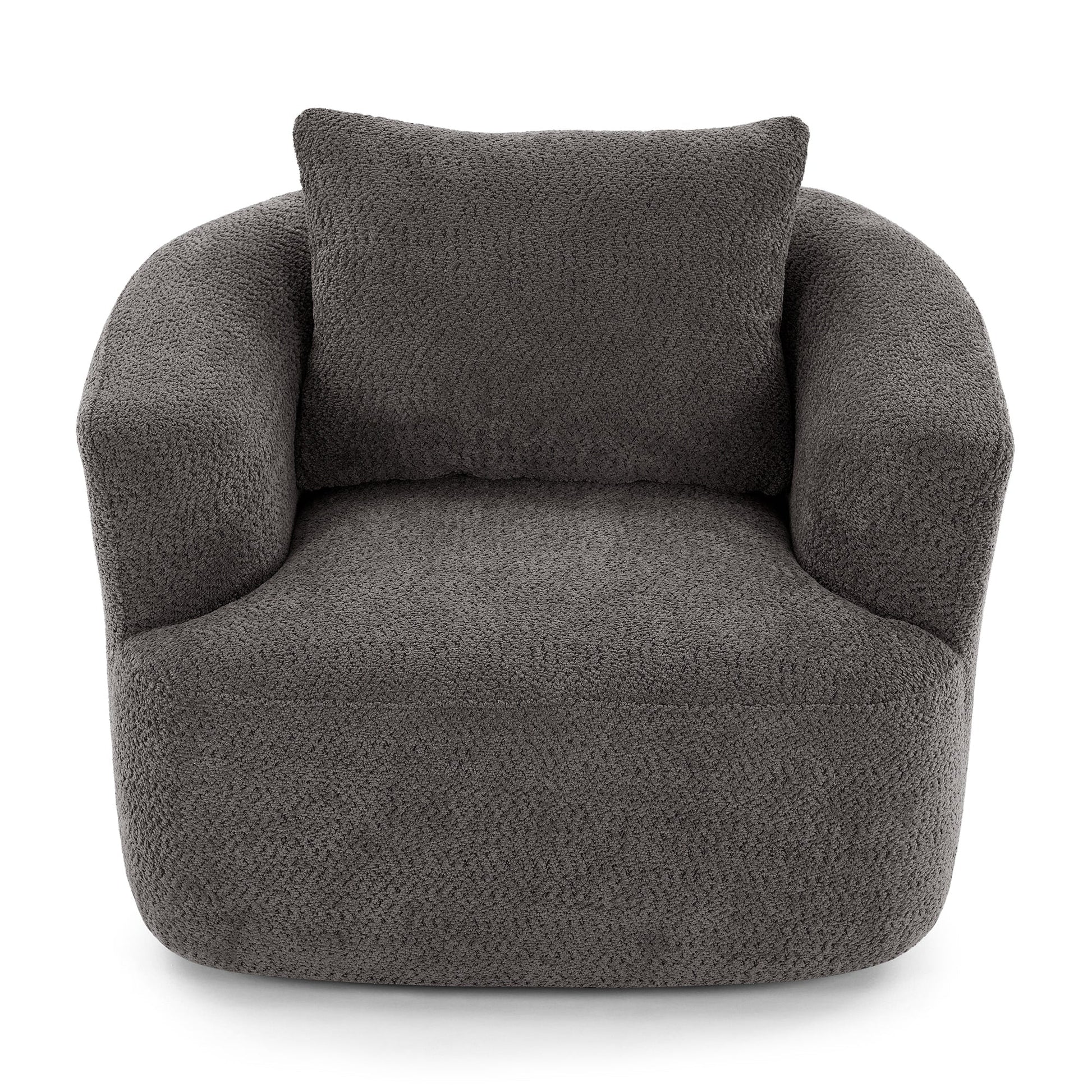 Fauteuil pivotant à 360°, fauteuil d'appoint en boucle de 38,2" avec coussin décoratif, fauteuil rembourré en forme de tonneau avec accoudoirs incurvés