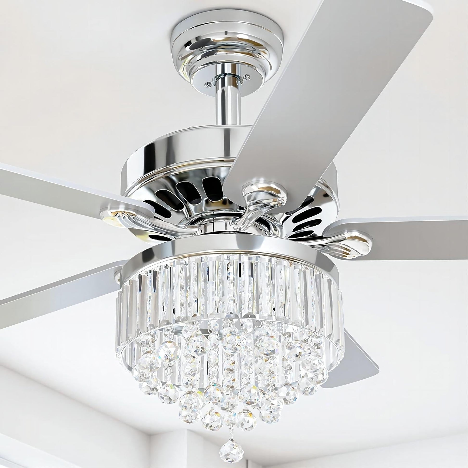 Lustre de plafond en cristal à 5 pales en bois de 52 pouces avec télécommande