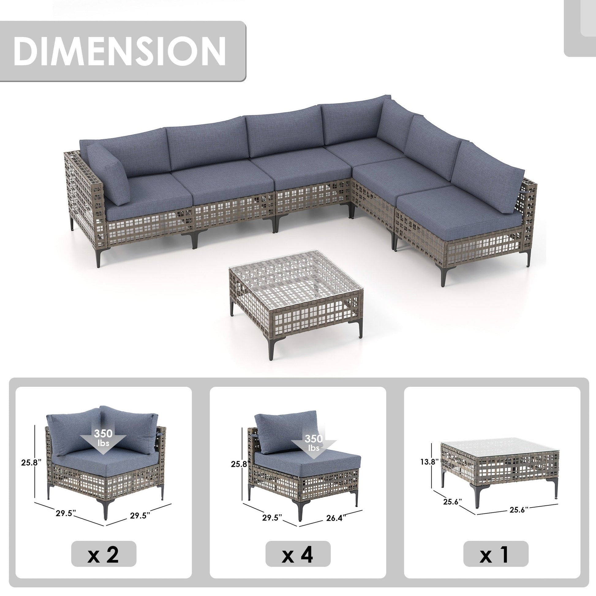 Ensemble de sièges d'extérieur sectionnels pour 6 personnes avec coussins