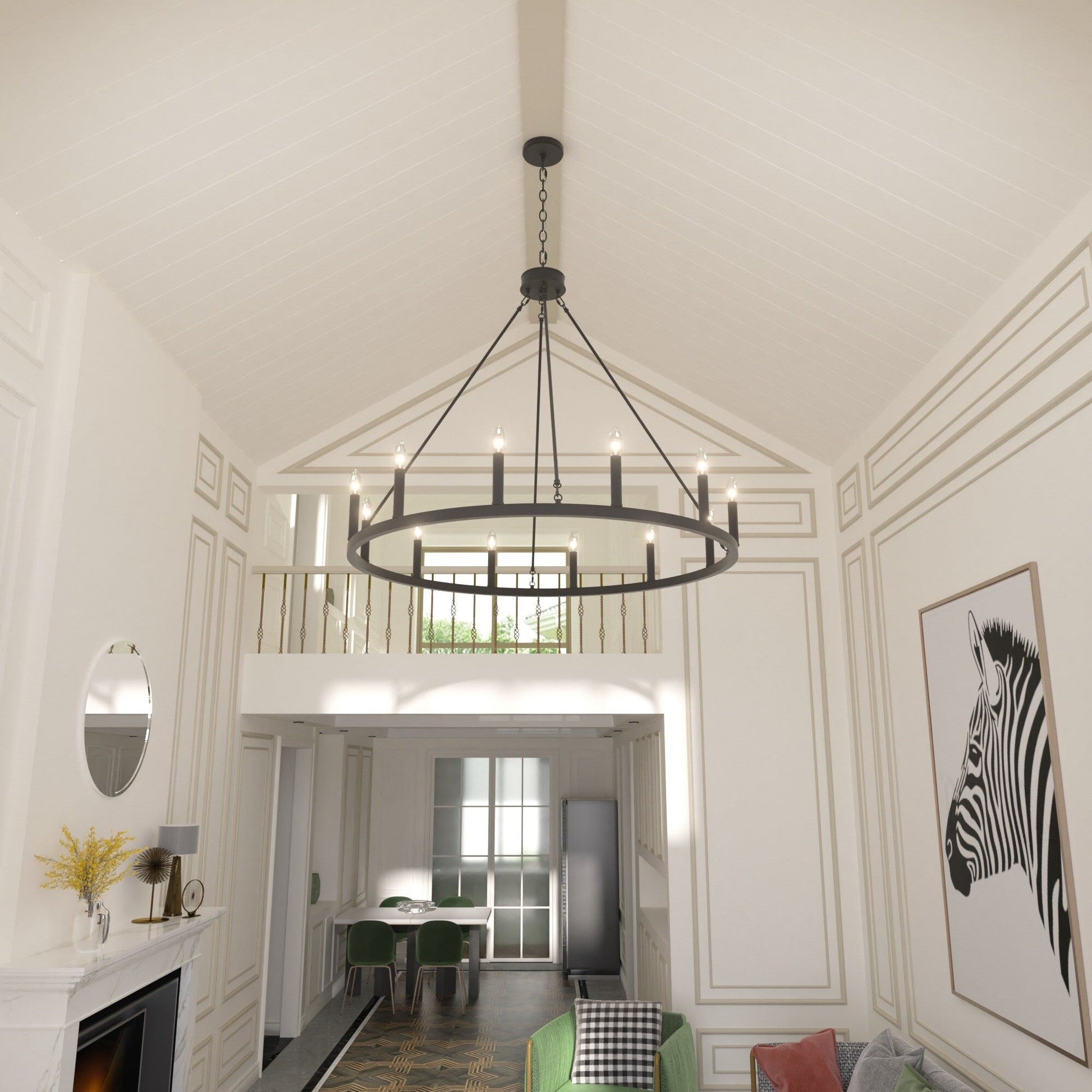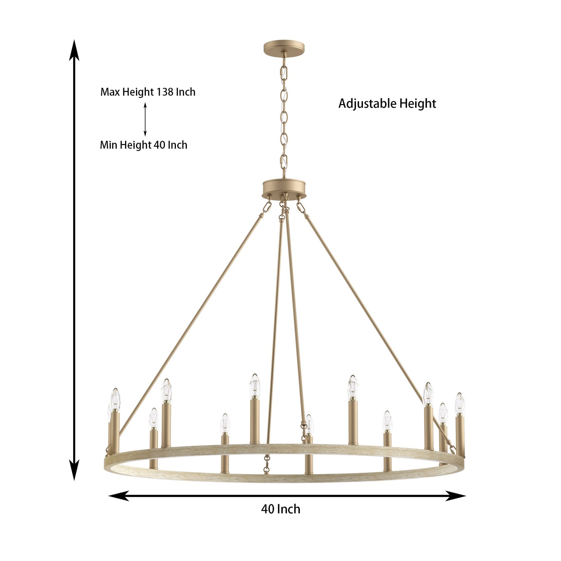 Lustre Acroma Farmhouse à 12 lumières, 40 po, en forme de roue de chariot, certifié UL - 40 po P x 138 po H