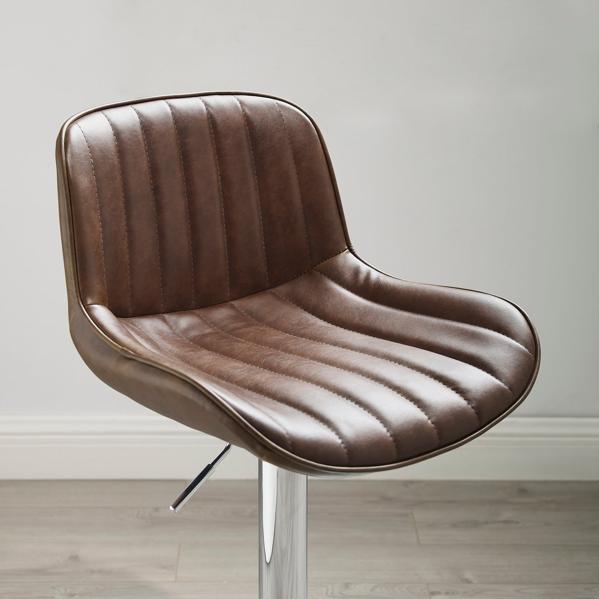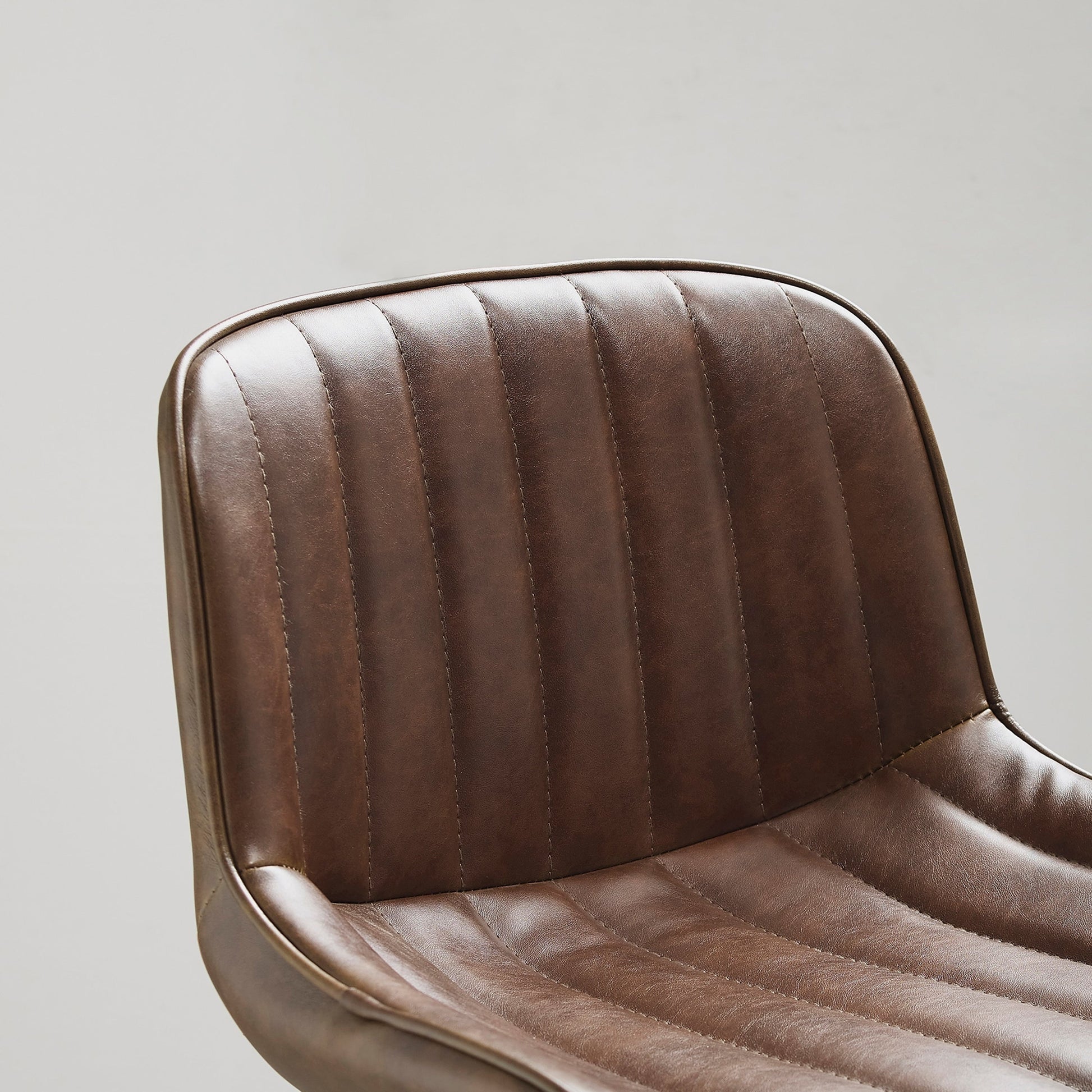 Insufflez une touche d'élégance Mid-Century à votre bar ou comptoir de cuisine avec l'ensemble de tabourets de bar pivotants et réglables Art Leon. Ces élégants tabourets de bar arborent une assise profilée en similicuir, un dossier bas et un matelassage strié classique, disponibles dans une large gamme de couleurs. Le piètement, proposé en noir sophistiqué ou en chrome élégant, est doté d'un vérin à gaz avancé permettant un réglage en hauteur sans effort, et intègre un repose-pieds pratique. Pivotant à 360 degrés et dotés d'une structure métallique robuste, ces tabourets sans accoudoirs sont parfaits pour recevoir vos invités avec style.