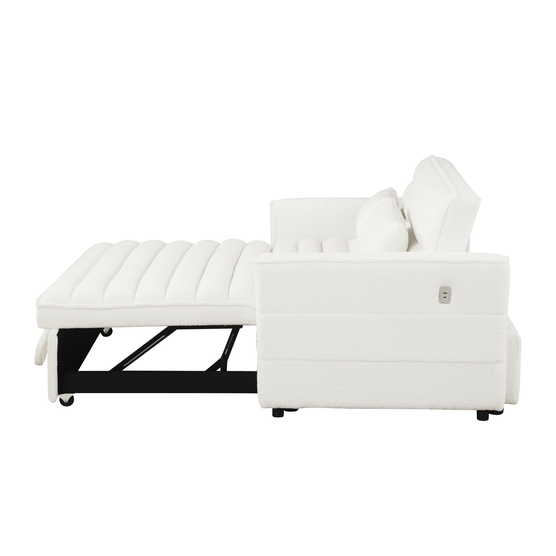 Canapé-lit convertible Boucle beige 55,12 pouces avec dossier réglable et 2 coussins de taille pour le salon