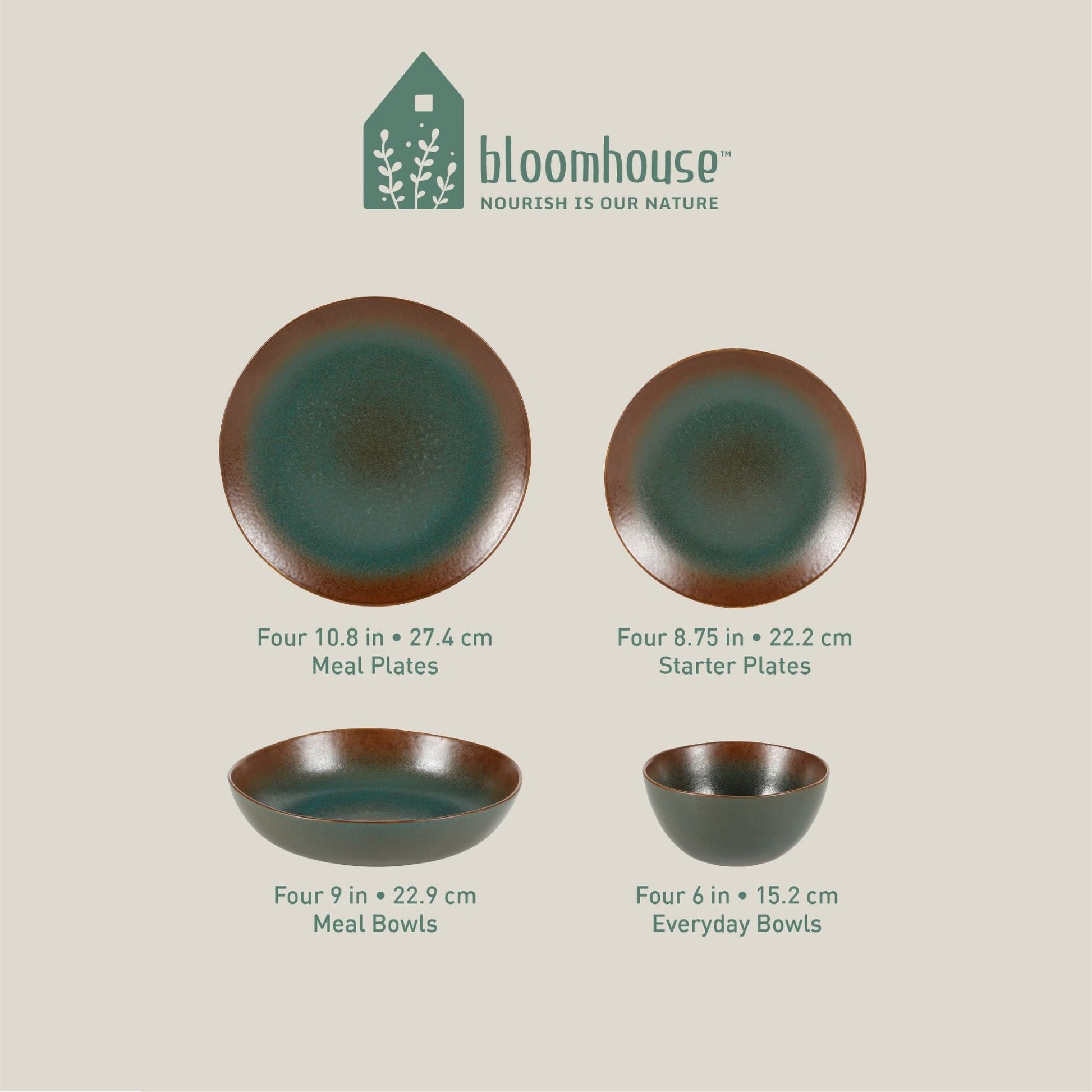 * Cet ensemble comprend quatre assiettes à repas de 11 pouces, quatre assiettes de démarrage de 8 pouces, quatre bols de tous les jours de 6 pouces et quatre bols à repas de 9 pouces.