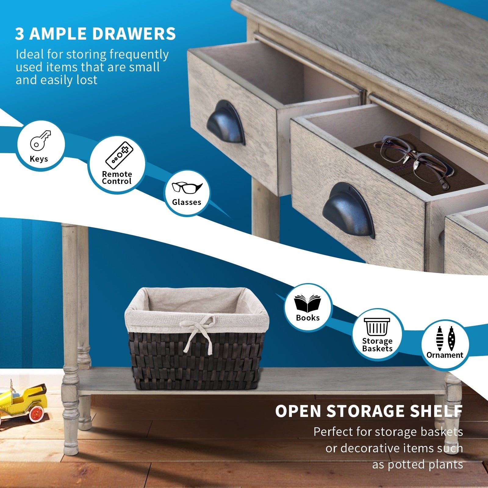 Console d'entrée à 3 tiroirs en bois de Burlington