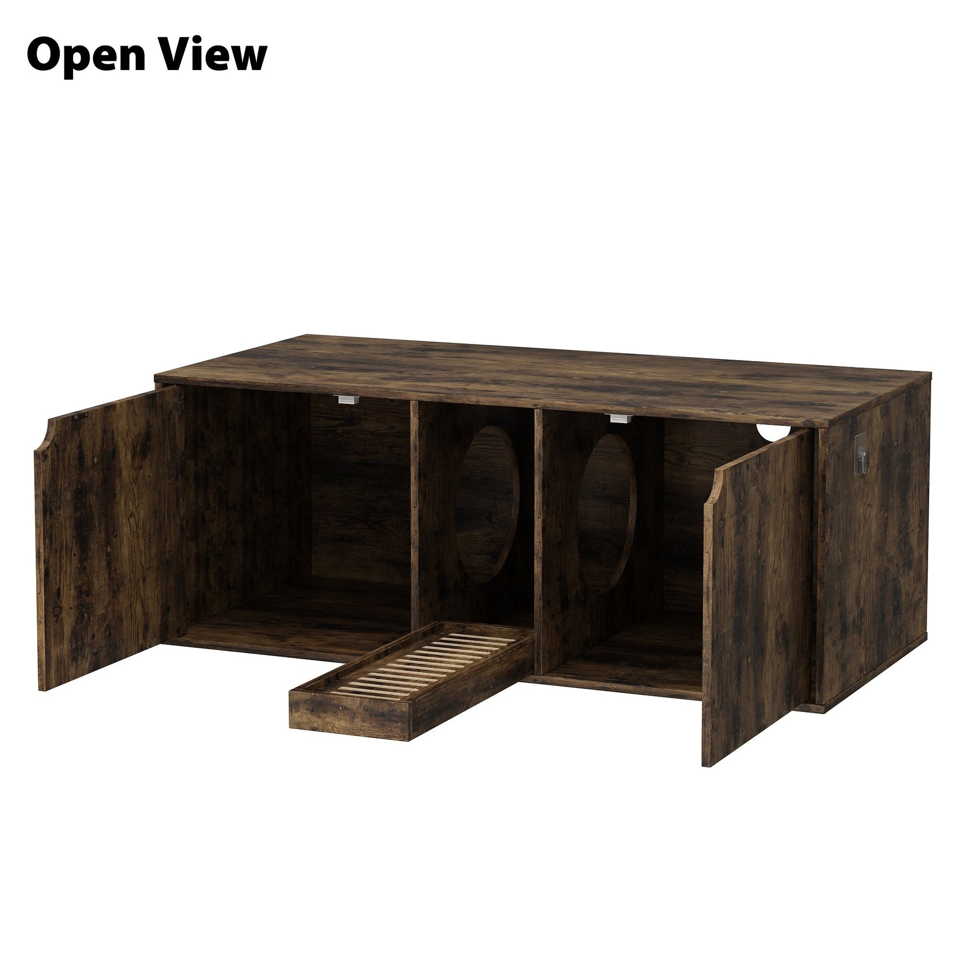 Dual-Compartment Cat Litter Box Enclosure Multi-Functional Furniture