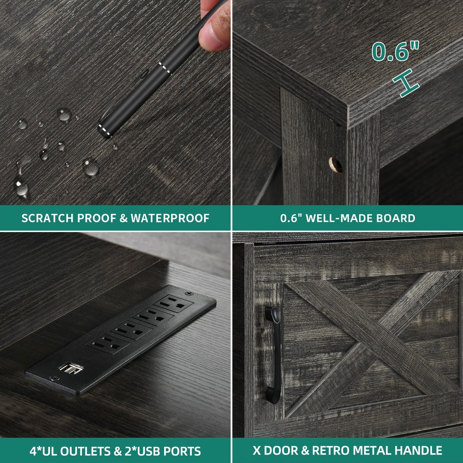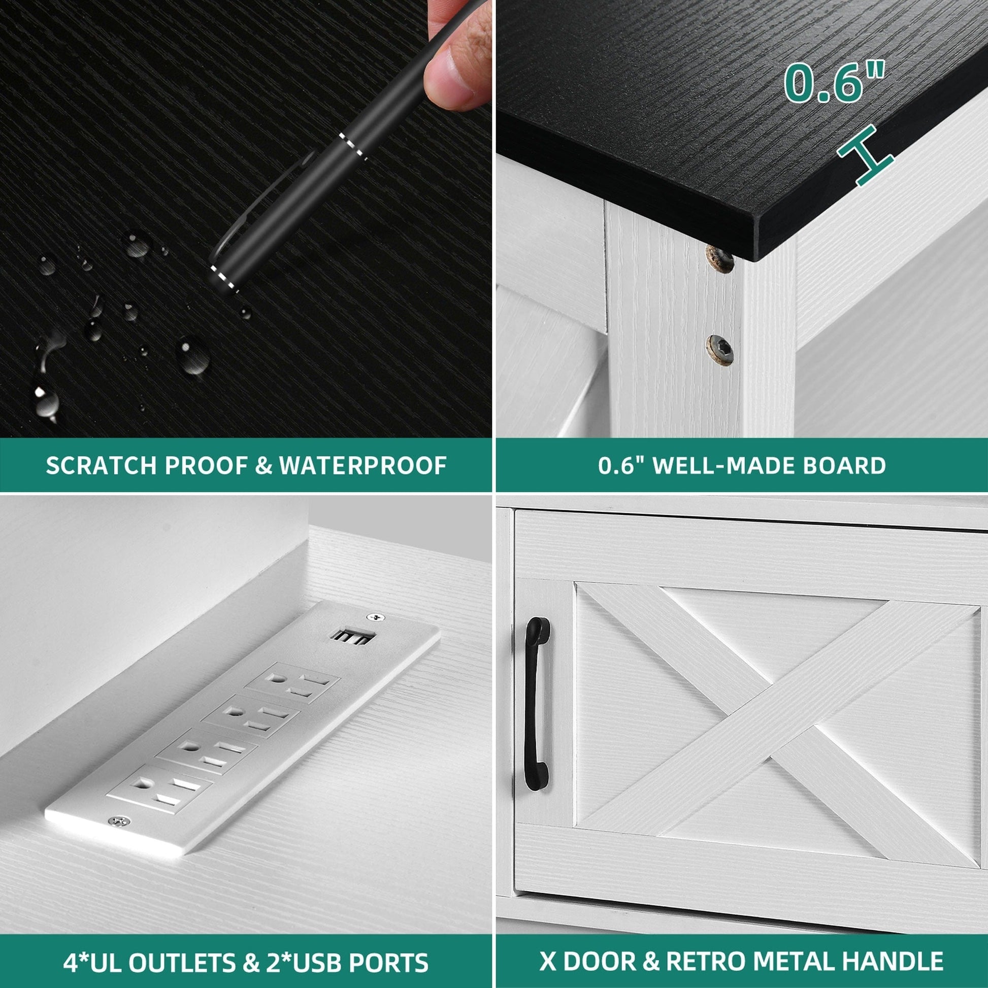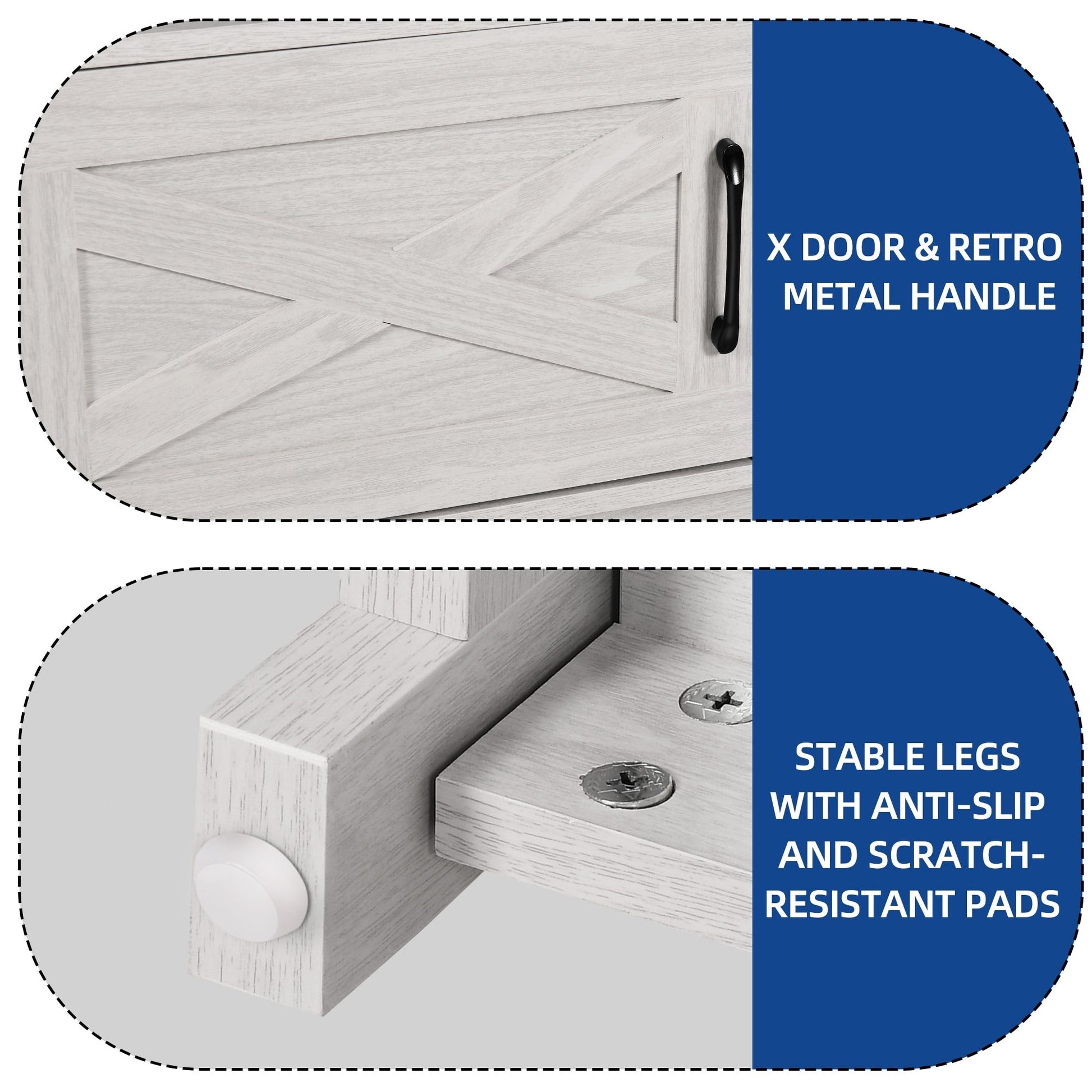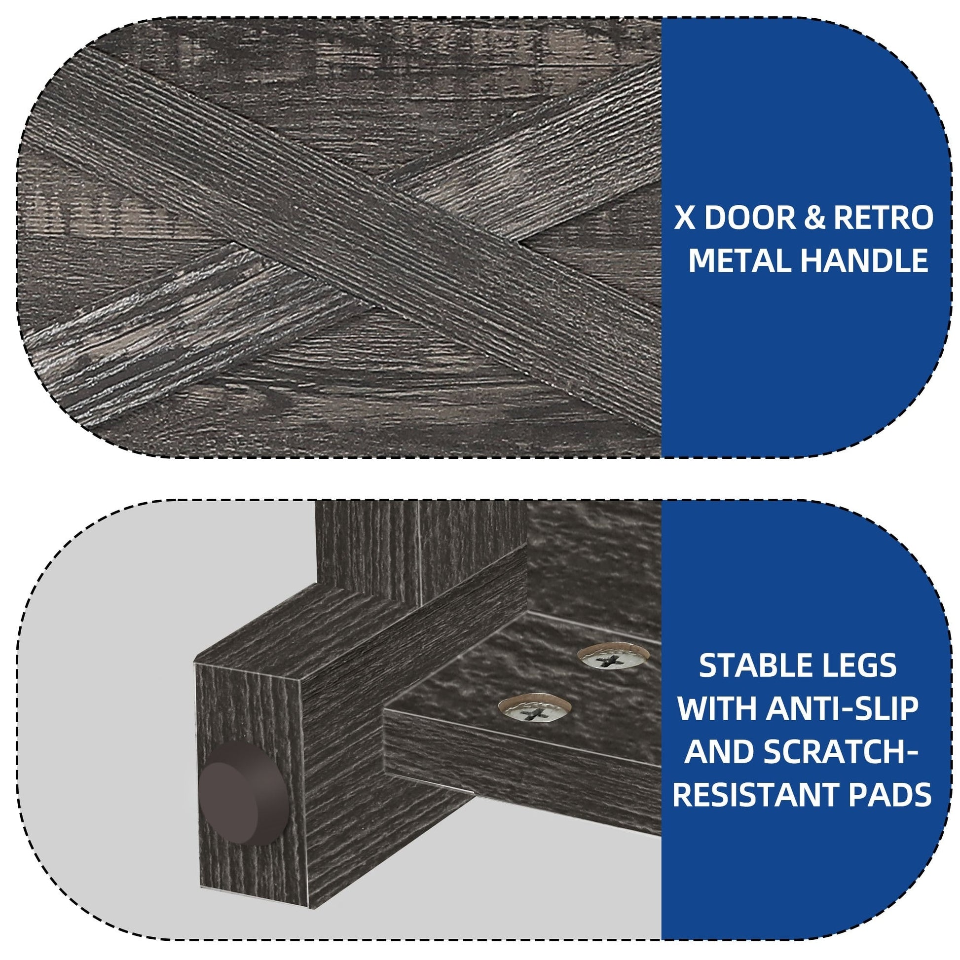 - 1. Design double X : Le design classique en X des deux côtés rehausse le style décoratif. Les poignées en acier et les portes à charnières permettent un accès facile aux objets, sans oscillation ni frottement.