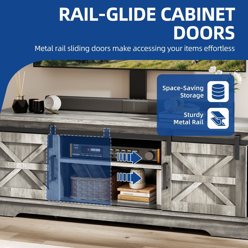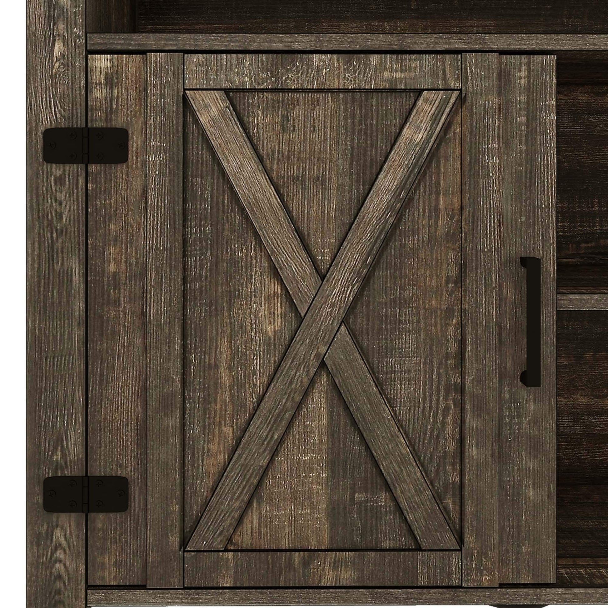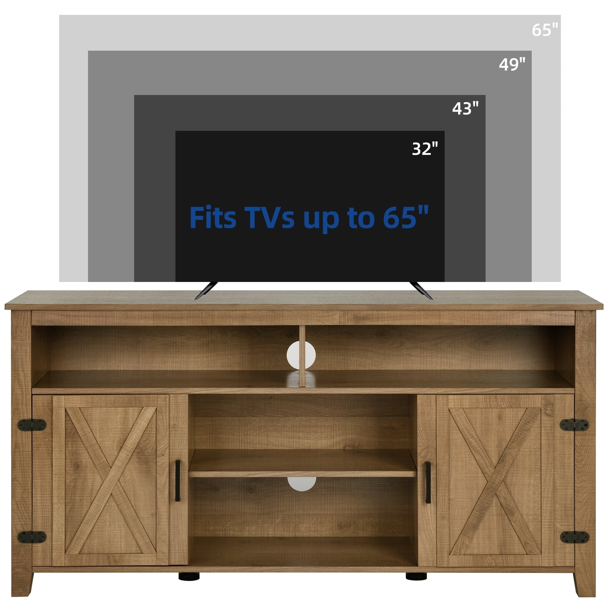Meuble TV Farmhouse pouvant accueillir jusqu'à 65 téléviseurs avec portes et étagères ouvertes Console multimédia Prise de courant
