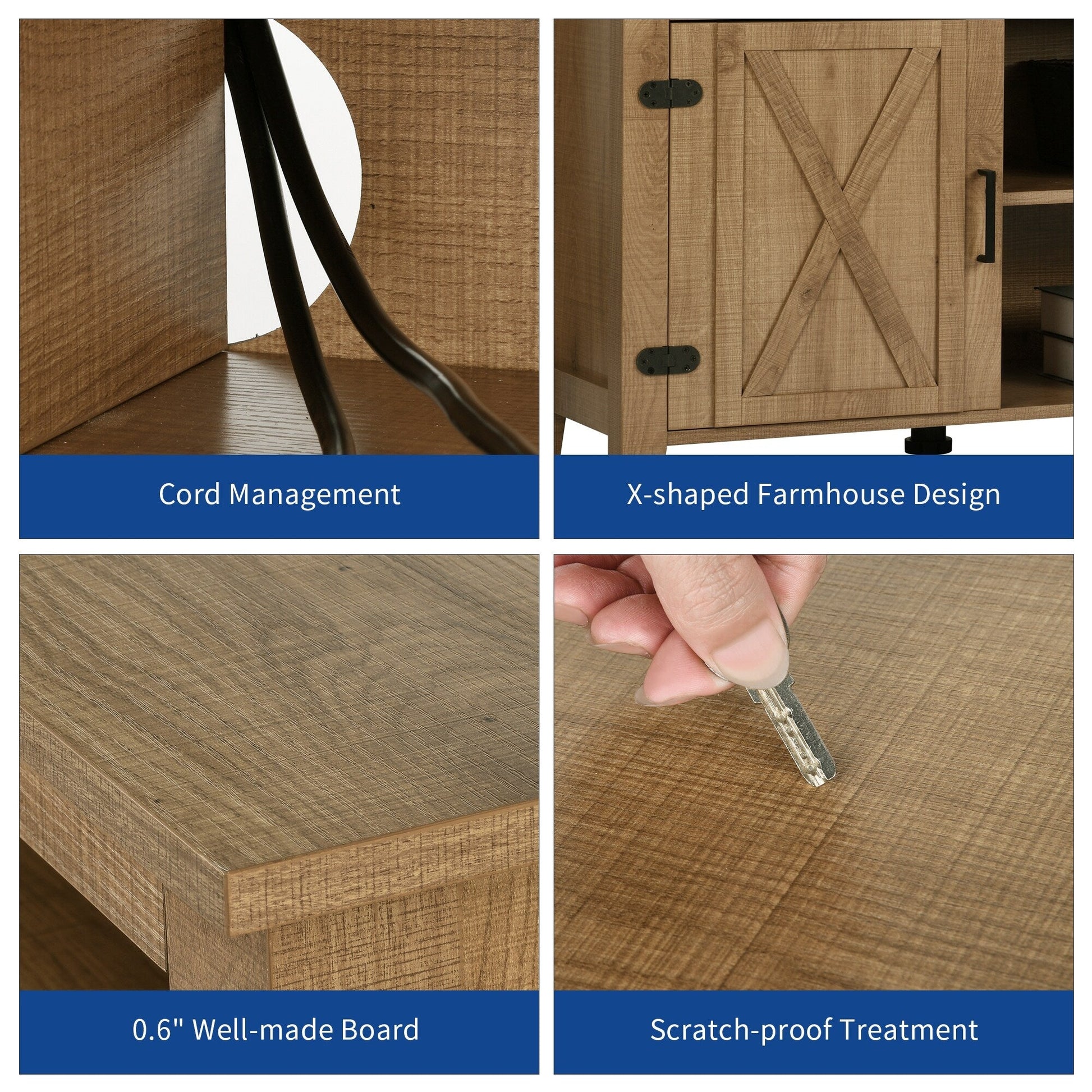 - 3. Profitez d'années d'utilisation : Fabriqué en bois d'ingénierie recouvert d'une finition résistante à l'eau et aux rayures, le meuble TV en bois durable permet des années de plaisir
