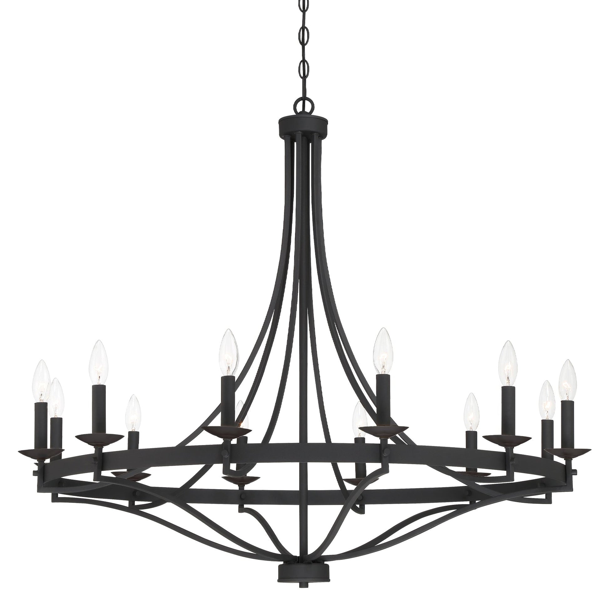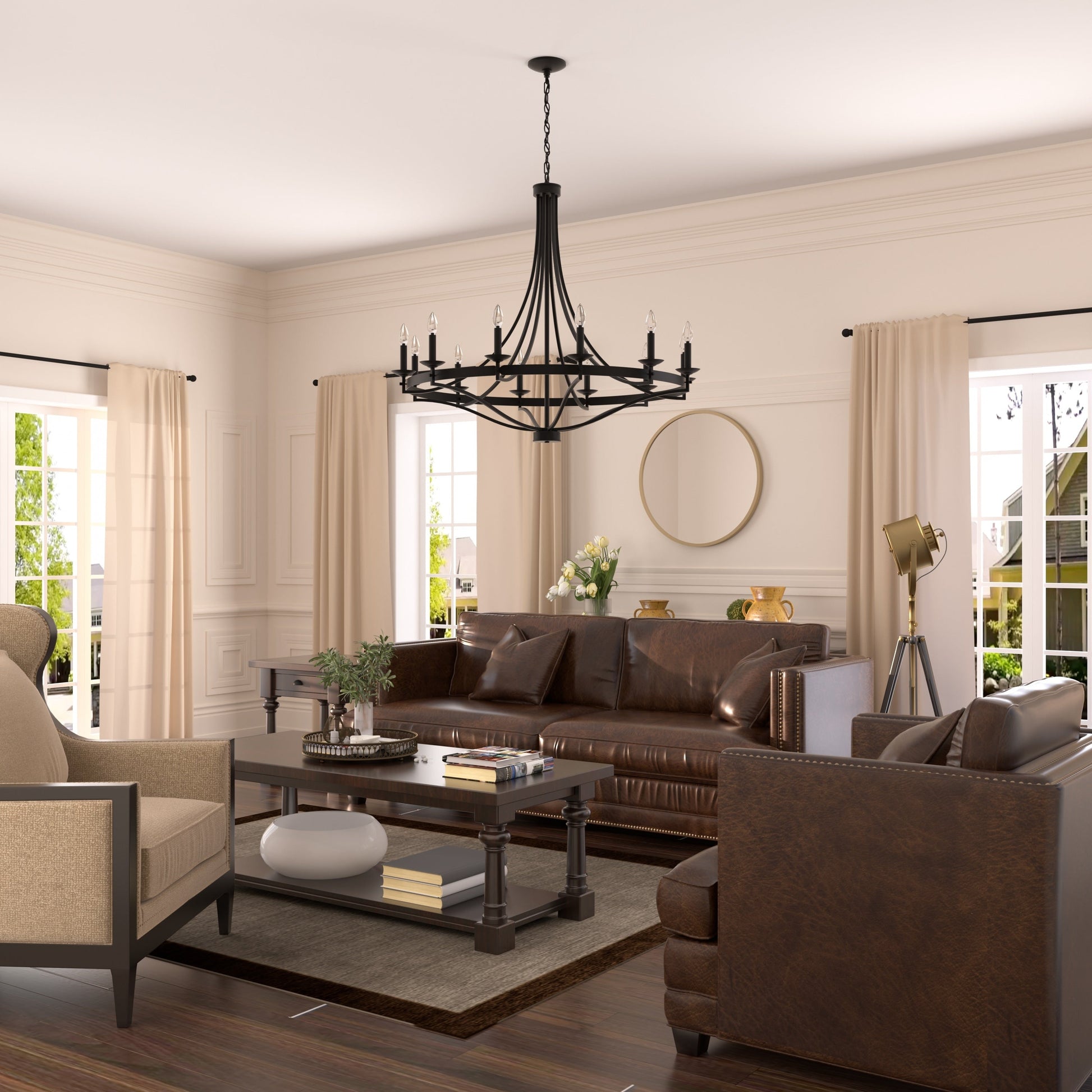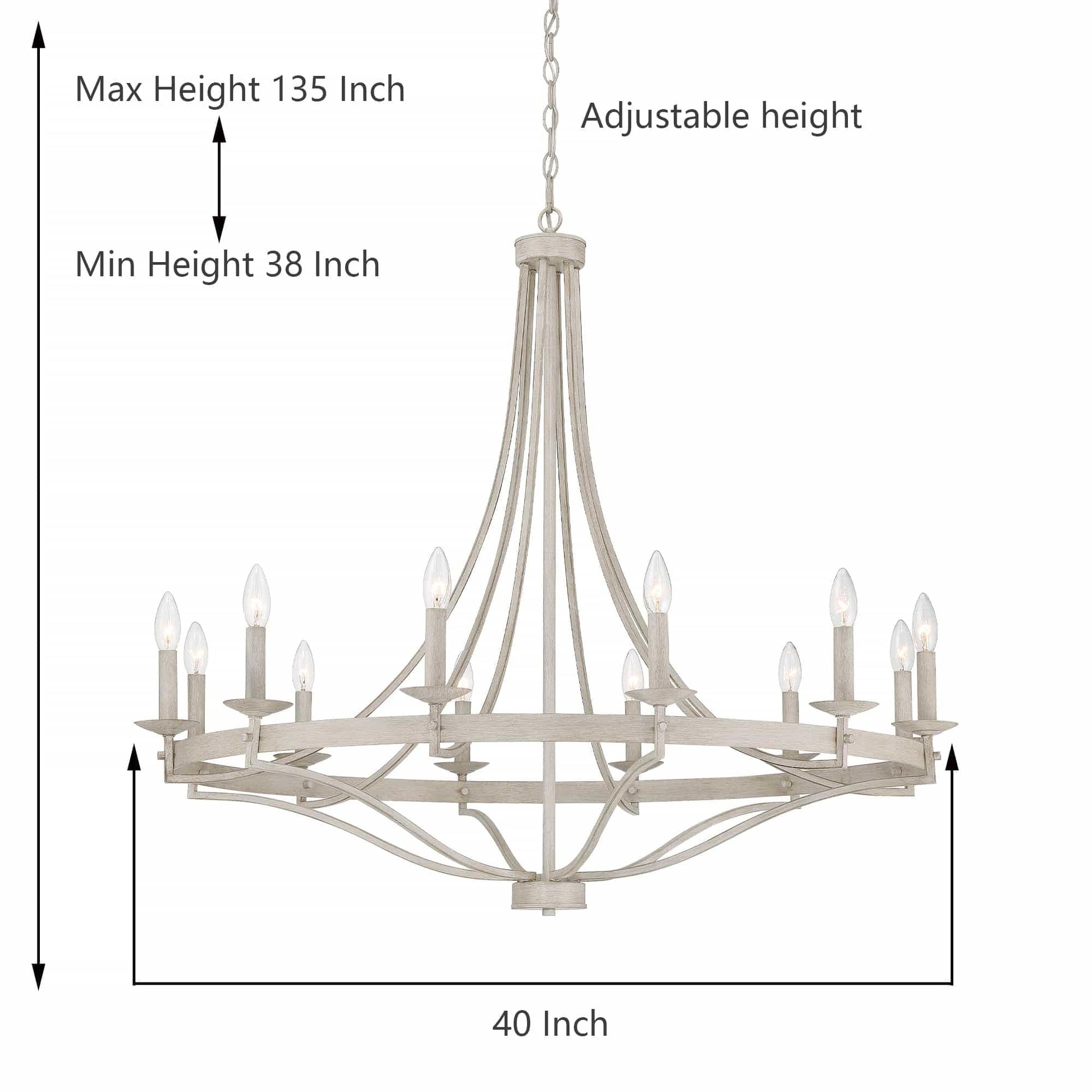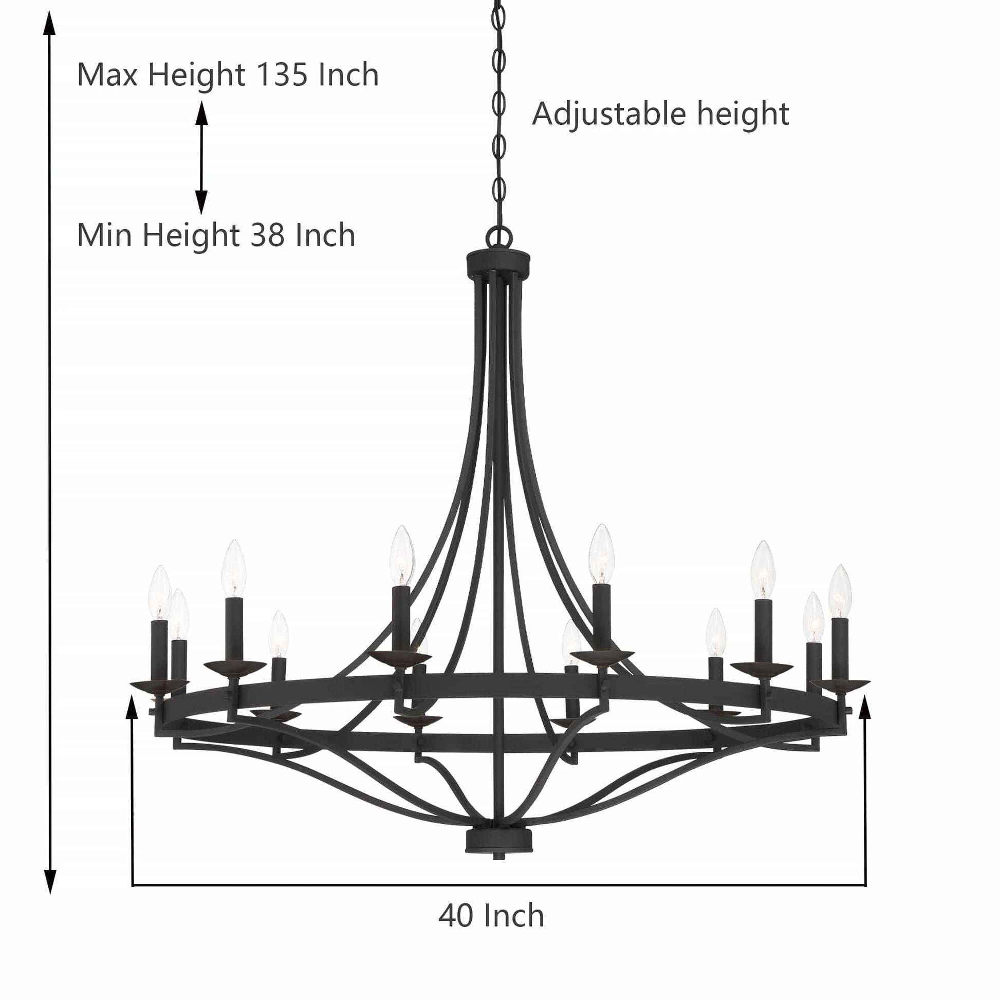 Lustre Empire à 12 lumières de style ferme moderne Fidenza avec roue de chariot et UL - D40'' * H135''