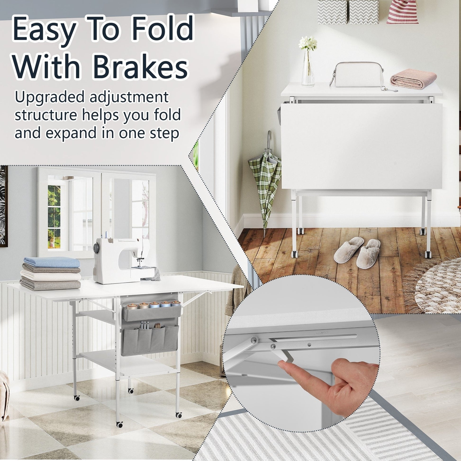Table de bricolage réglable en hauteur avec étagères de rangement, table de découpe pliante mobile pour la maison, le bureau, la salle de couture, la salle d'artisanat