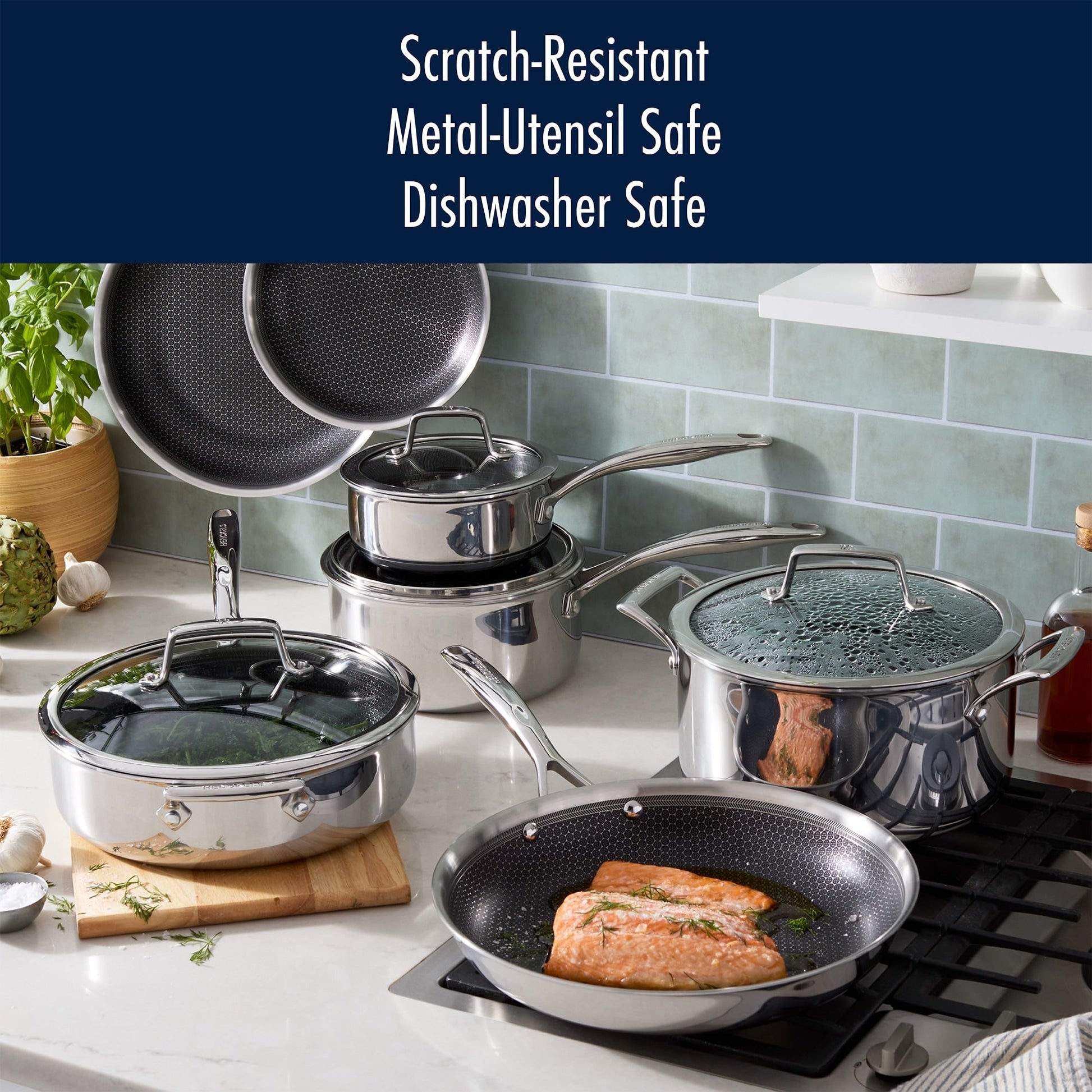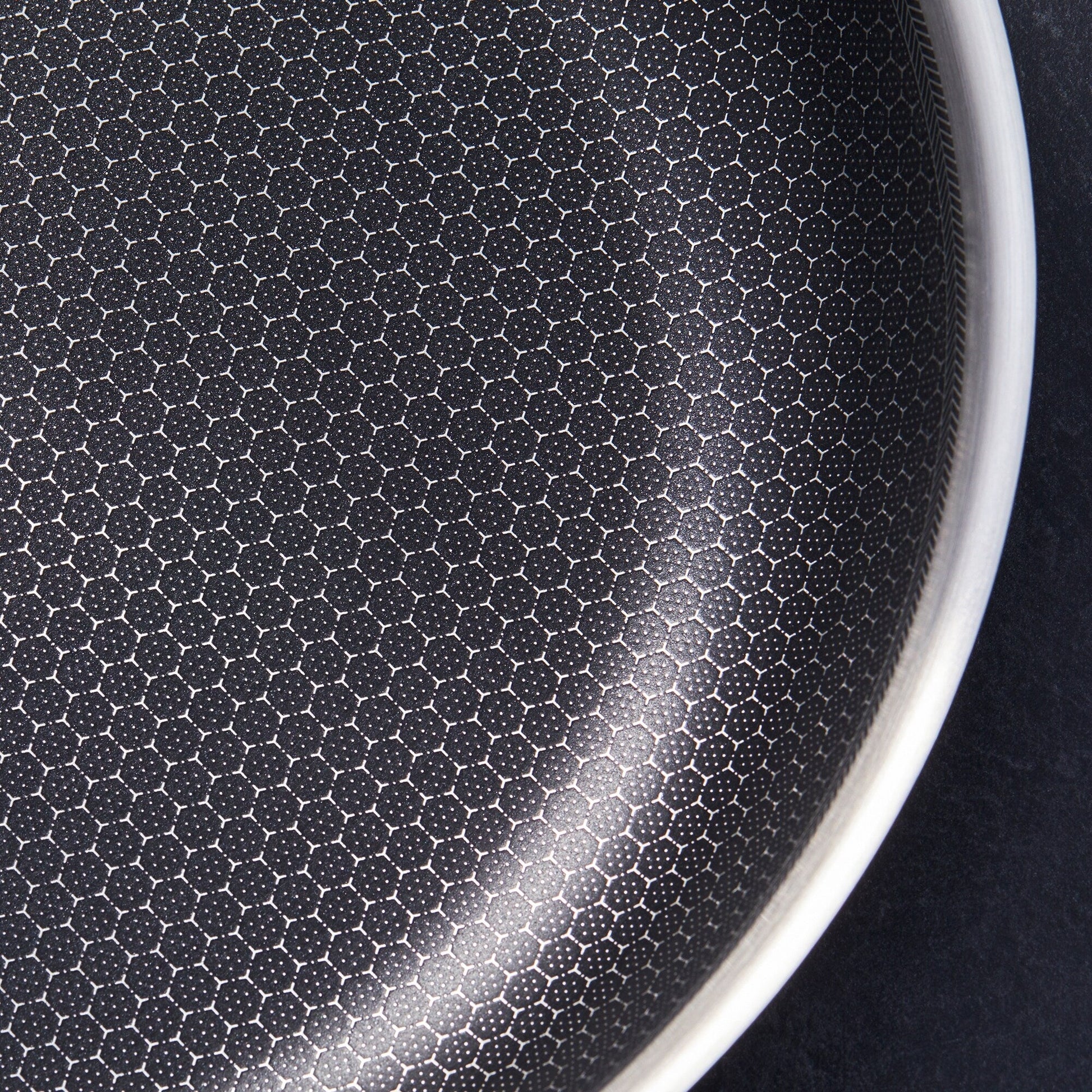Faites dorer et saisir sans crainte, tout en profitant d'un démoulage et d'un nettoyage faciles grâce aux ustensiles de cuisine antiadhésifs hybrides HENCKELS Paradigm. Cet ensemble de poêles comprend 3 poêles indispensables pour la cuisine quotidienne. Brouillez des œufs dans la poêle de 20 cm, saisissez de la viande et faites sauter des légumes dans la poêle de 25 cm, et cuisinez pour un grand nombre de convives dans la poêle de 28 cm. Un motif en acier inoxydable en relief et un revêtement antiadhésif triple couche allient la polyvalence et la durabilité de l'acier inoxydable à la praticité de l'antiadhésif. Le revêtement innovant et la construction robuste en acier inoxydable triple épaisseur garantissent des performances exceptionnelles, que vous doriez vos protéines préférées ou que vous prépariez des omelettes légères et moelleuses. Parmi les caractéristiques pratiques pour les chefs, on trouve une poignée ergonomique en V qui reste froide avec une boucle de suspension pour un rangement pratique, et un bord évasé pour un versement sans dégâts. Compatibles avec toutes les plaques de cuisson, elles permettent de saisir les aliments sur la cuisinière puis de les transférer facilement au four. Compatible lave-vaisselle, HENCKELS Paradigm est facile à nettoyer, ce qui fait de cette batterie de cuisine simple à utiliser un plaisir à cuisiner.