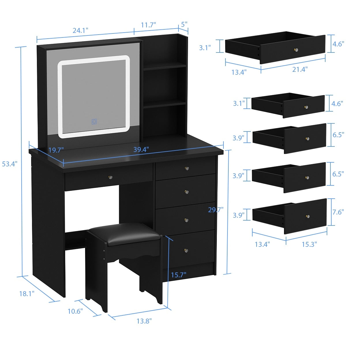 Coiffeuse Kerrogee avec miroir éclairé réglable et tabouret - 39,4 L x 19,7 l x 53,5 H