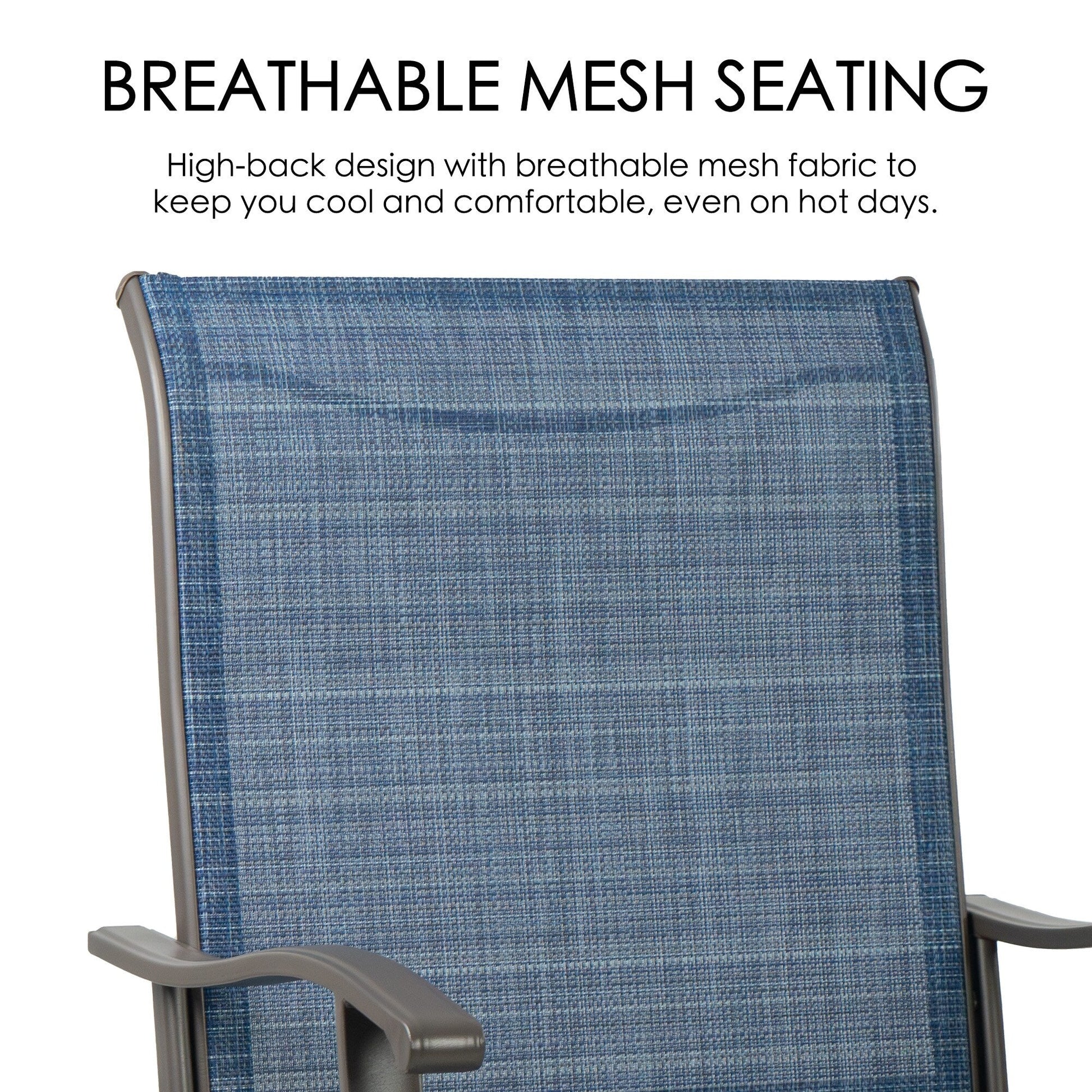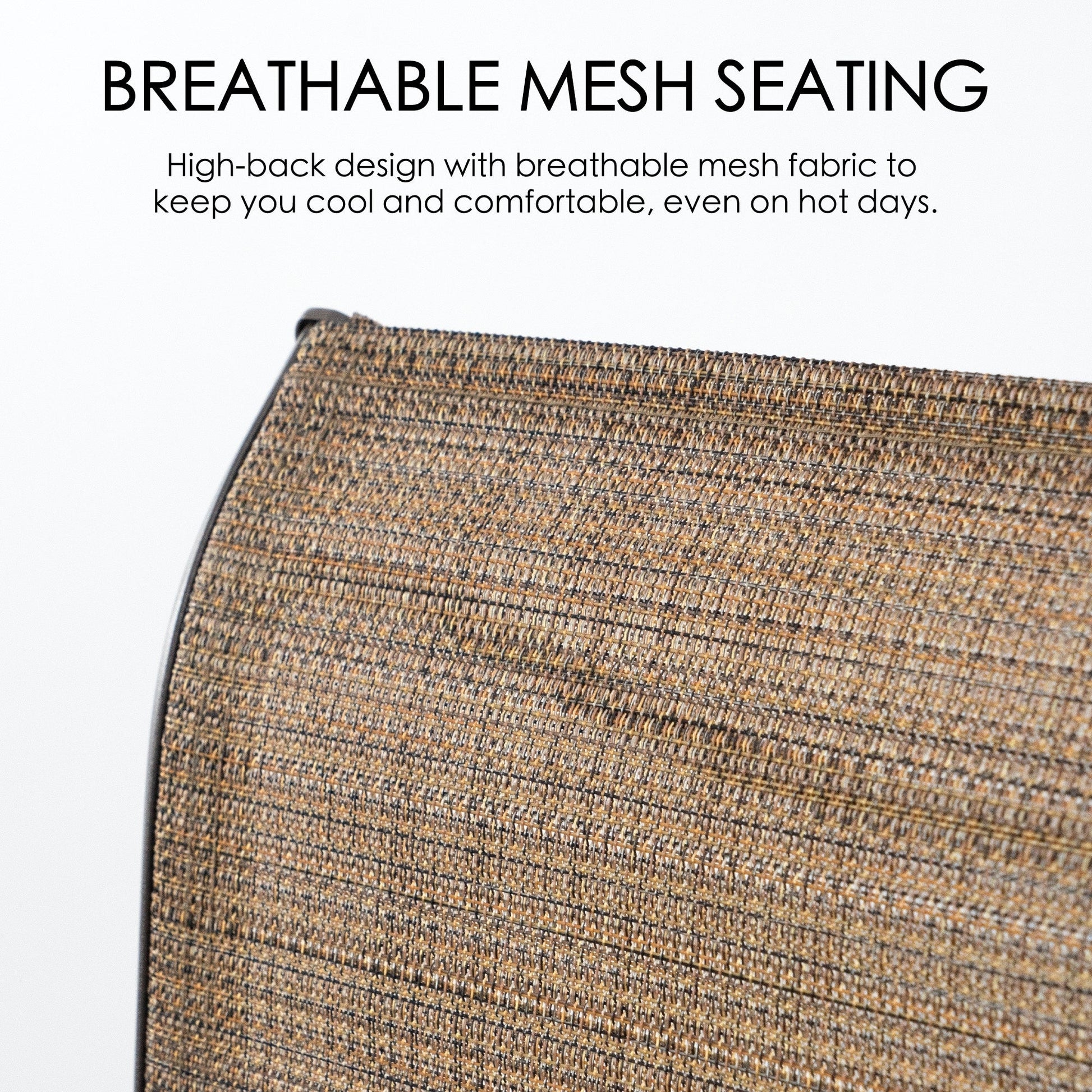 - Durable et solide : le cadre en acier résistant à la rouille et aux intempéries et le matériau en textilène respirant constituent une option d'assise durable et durable.