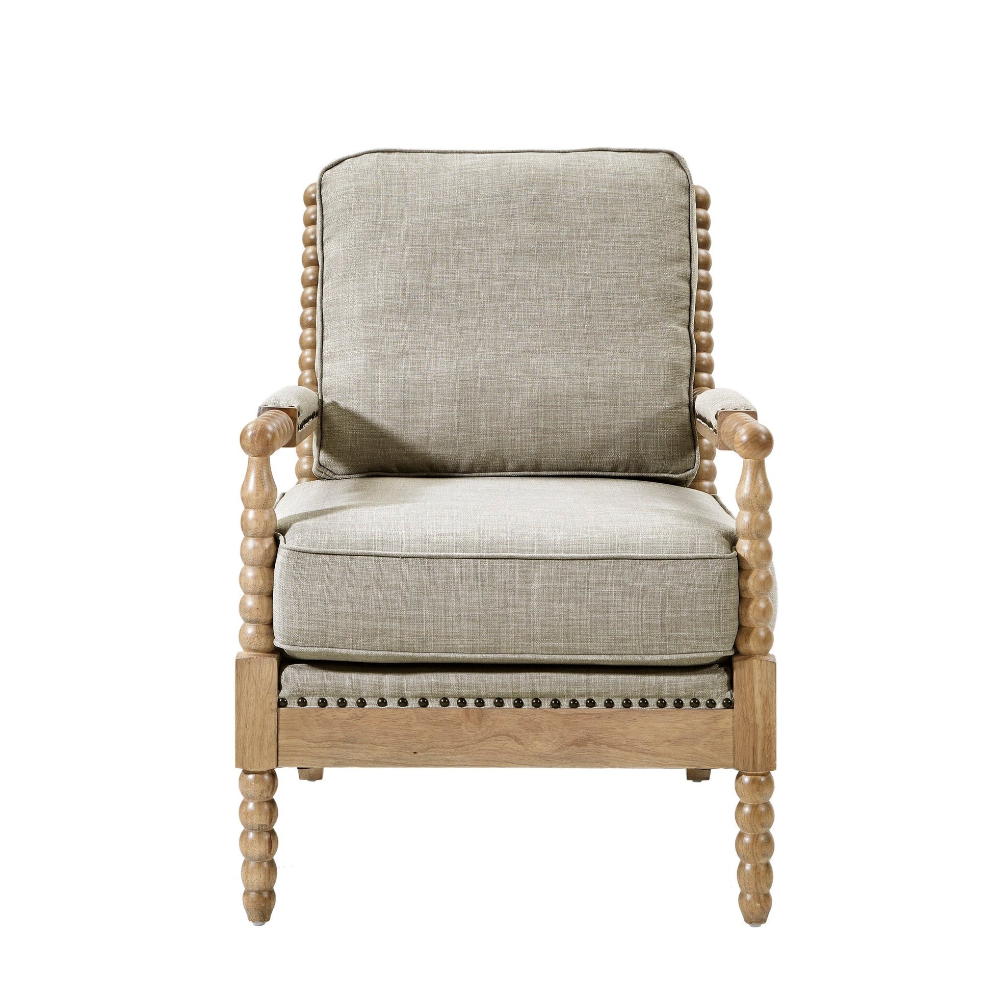 Sublimez votre espace avec le fauteuil en bois Donohue de Madison Park, un mélange parfait de charme classique et de confort moderne. Doté d'un dossier ouvert et de détails en bois tourné, ce fauteuil d'appoint avec accoudoirs dégage un charme intemporel. Son revêtement en tissu à tissage serré améliore la durabilité tout en résistant au boulochage, tandis que son assise moelleuse en mousse multicouche assure un soutien durable. Les accoudoirs rembourrés ajoutent un confort supplémentaire, tandis que les clous décoratifs bronze apportent une touche raffinée. Un fauteuil d'appoint polyvalent pour le salon, la chambre ou le coin lecture. Complétez votre intérieur avec ce fauteuil d'appoint intemporel dès aujourd'hui !