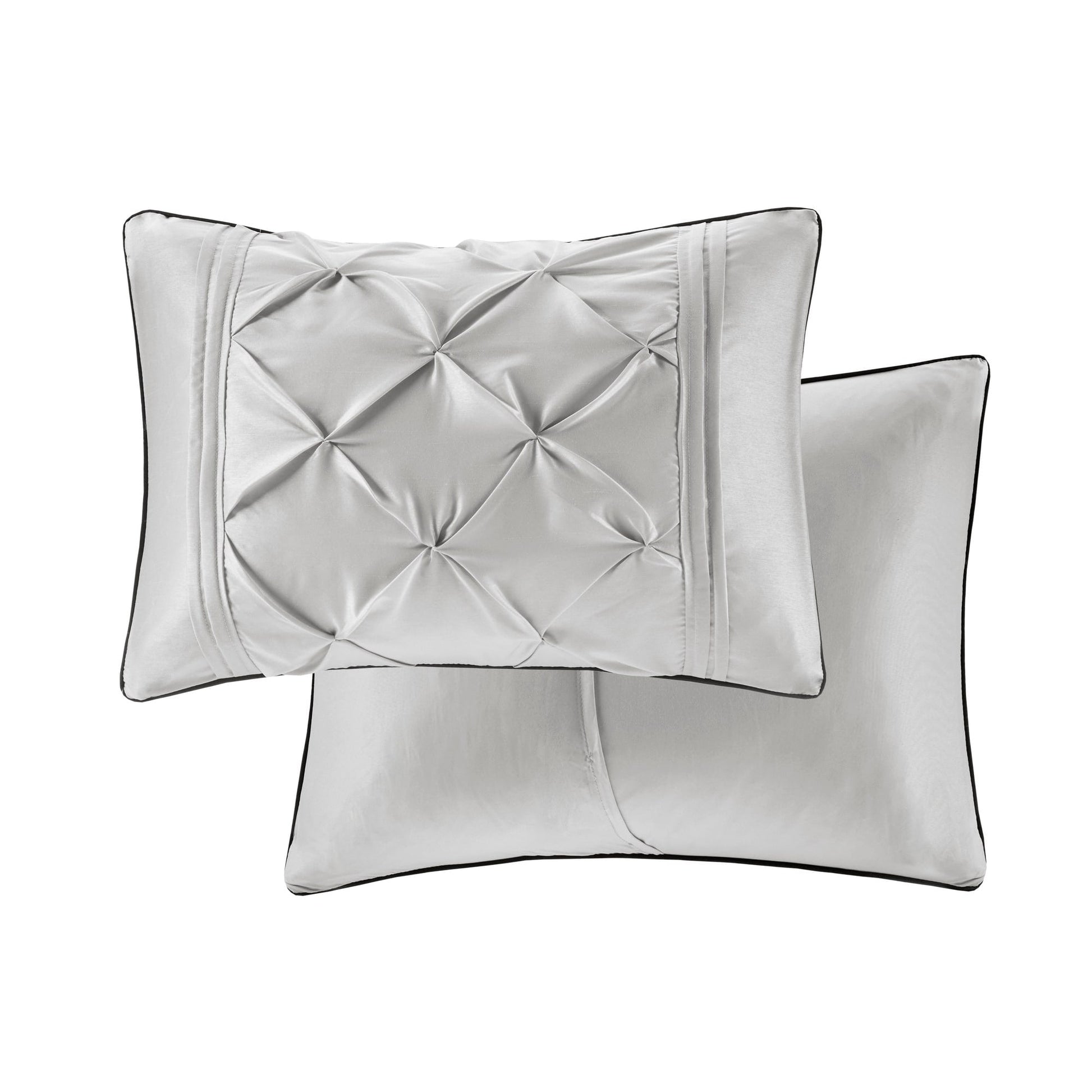 - L'ensemble comprend une couette, un cache-sommier, 2 taies d'oreiller, 2 oreillers décoratifs carrés et 2 oreillers décoratifs oblongs, 2 taies d'oreiller européennes, un ensemble de draps 4 pièces, 4 rideaux de fenêtre, 4 embrasses, 2 cantonnières