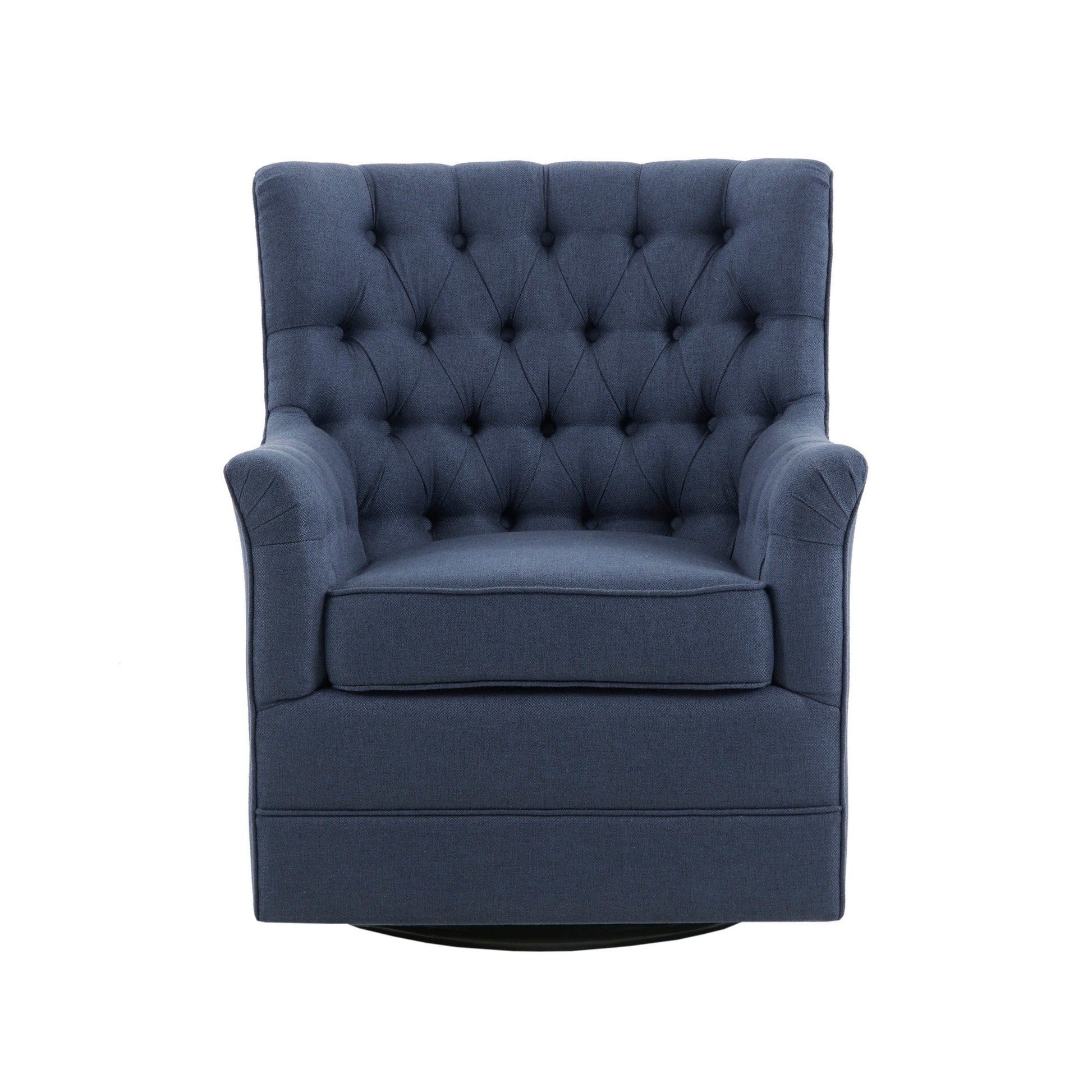 Détendez-vous dans le confort et l'élégance du fauteuil pivotant Madison Park Rae. Revêtu d'un tissu doux, ce fauteuil pivotant présente un dossier capitonné à la main pour un style traditionnel. Son piètement pivotant permet une rotation à 360 degrés et un balancement fluide. Doté d'un coussin d'assise amovible et confortable, ce fauteuil pivotant apporte une touche de confort classique à votre salon.