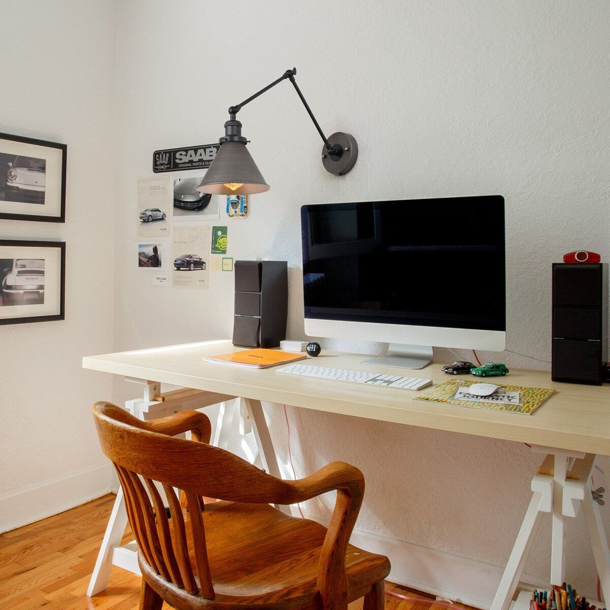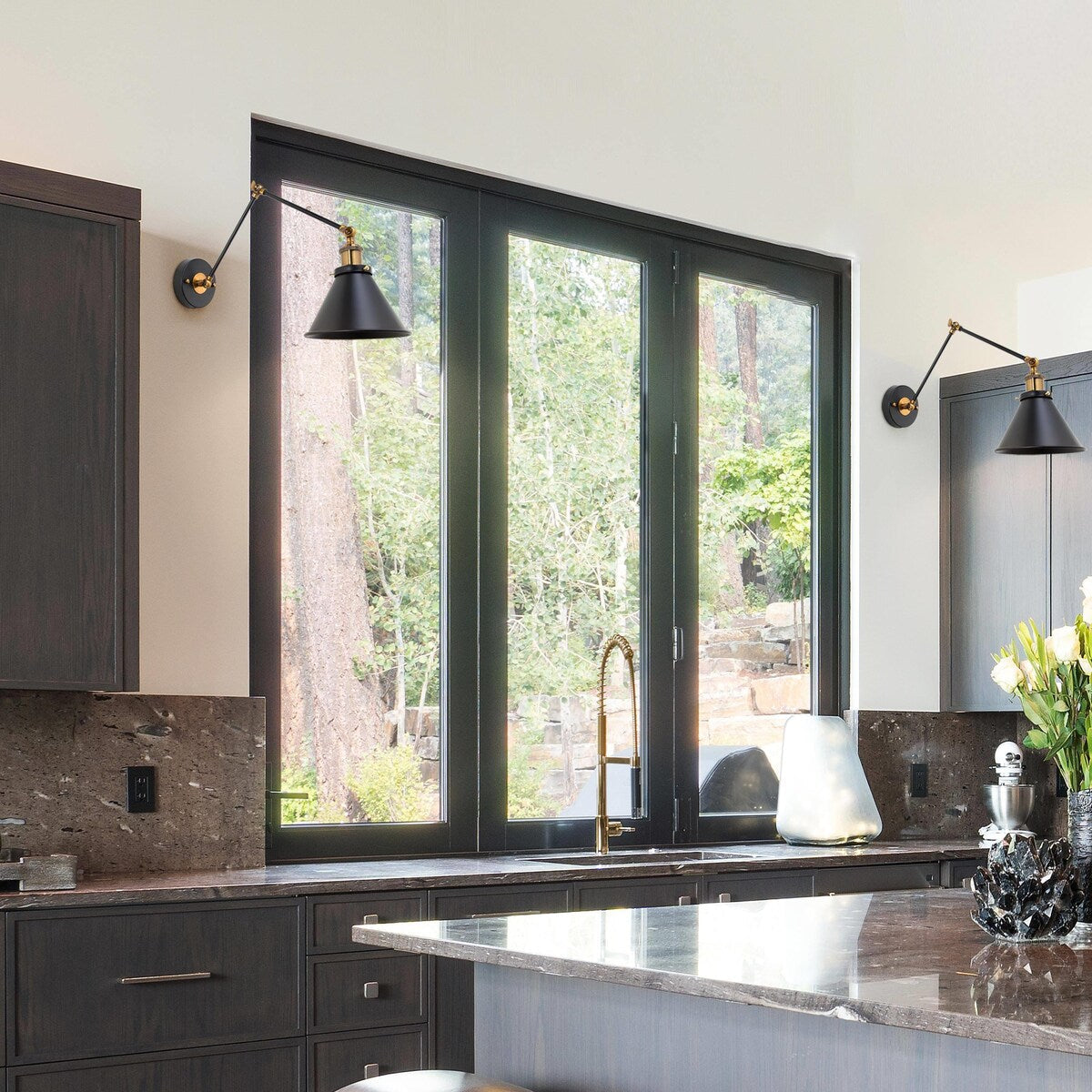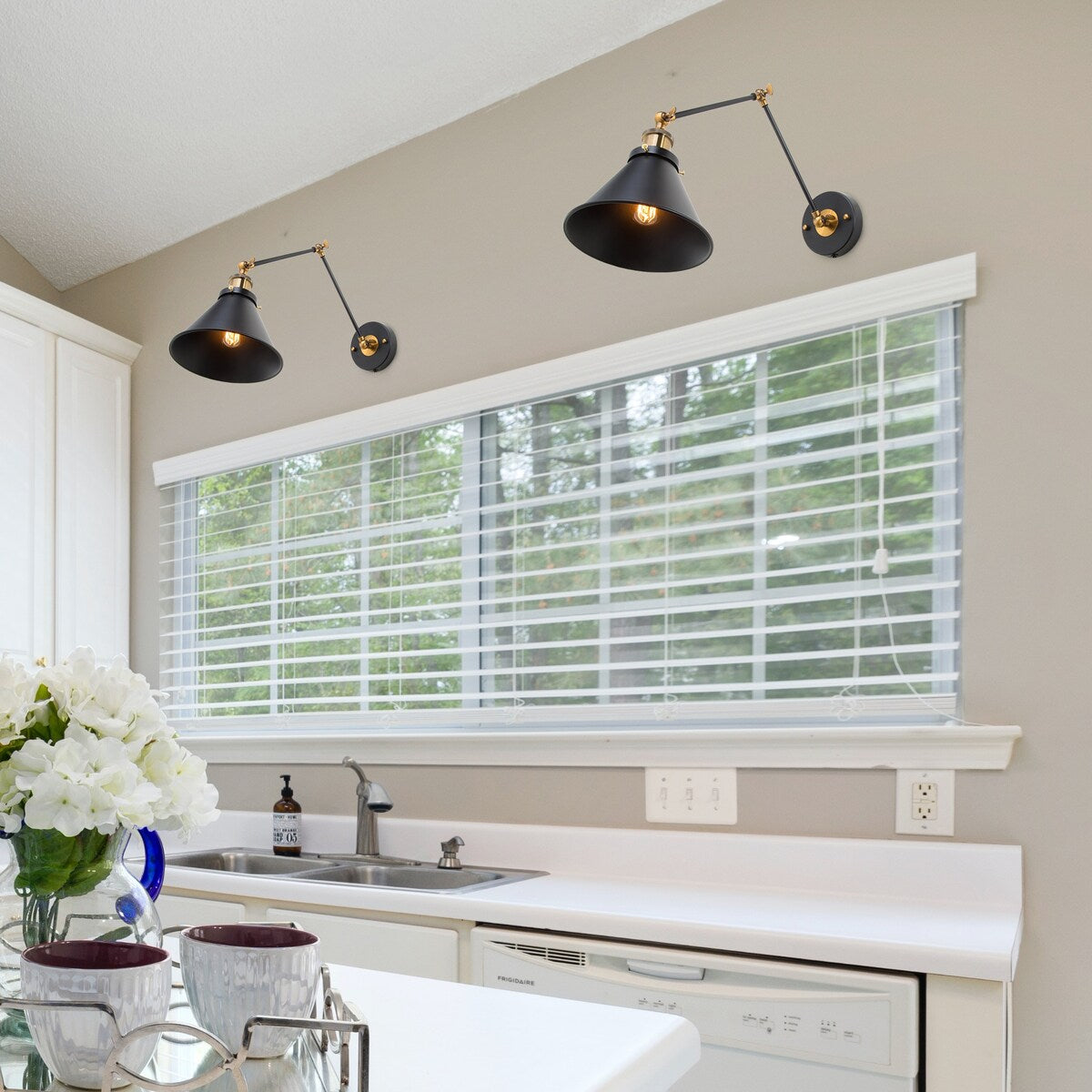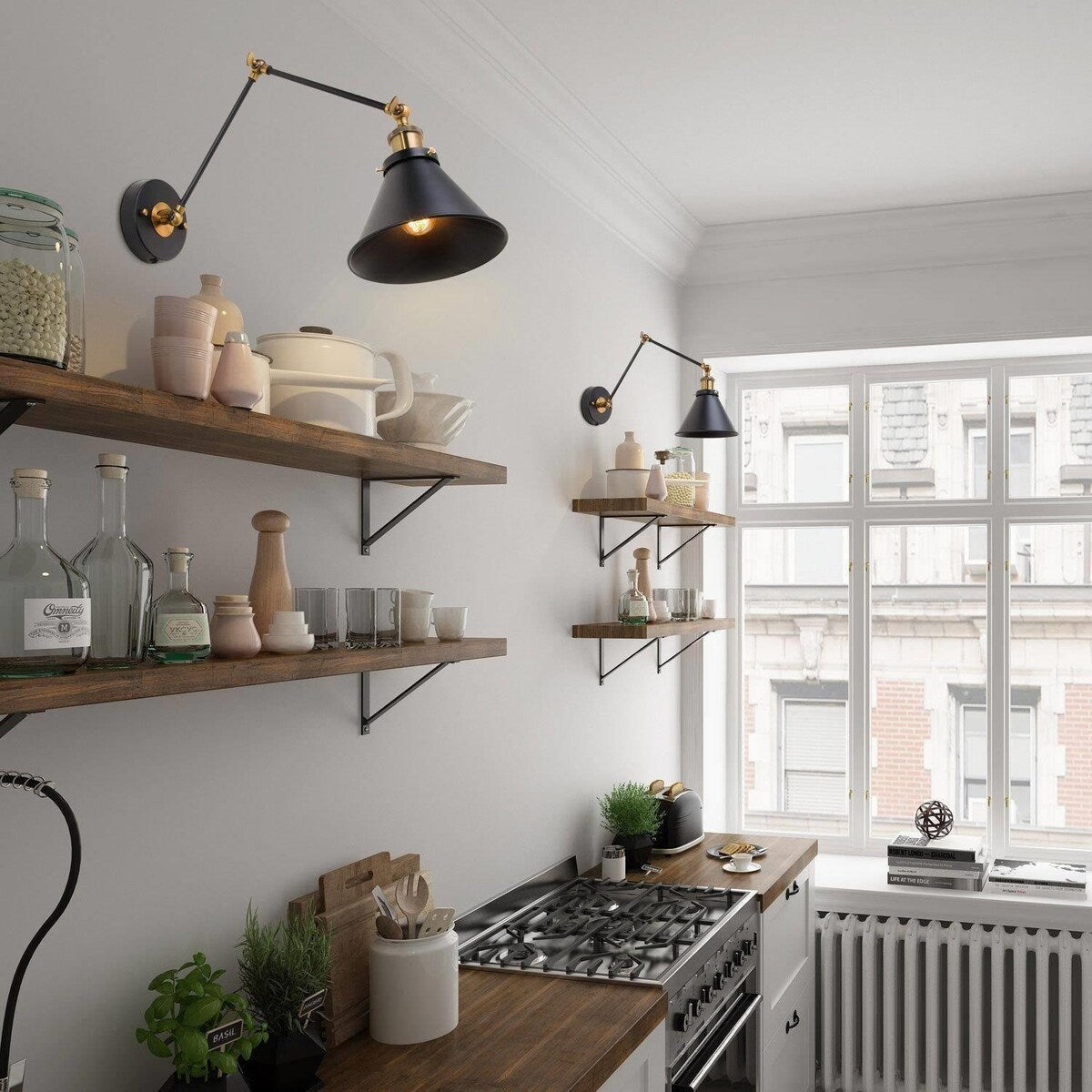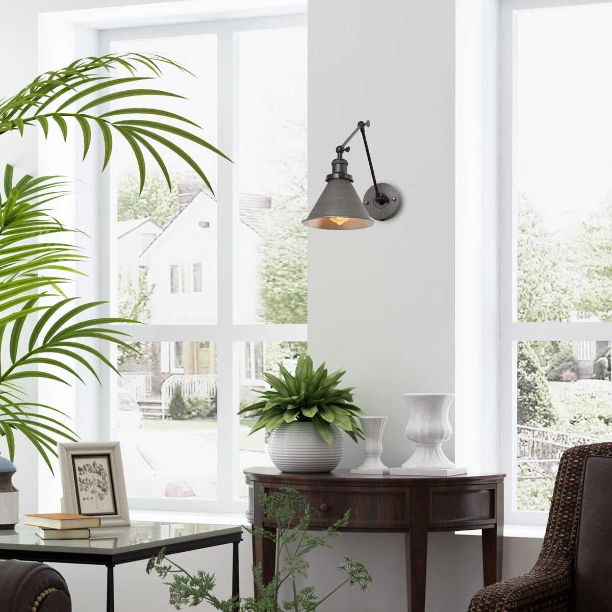 - Comprend un ensemble de deux lampes à bras pivotant