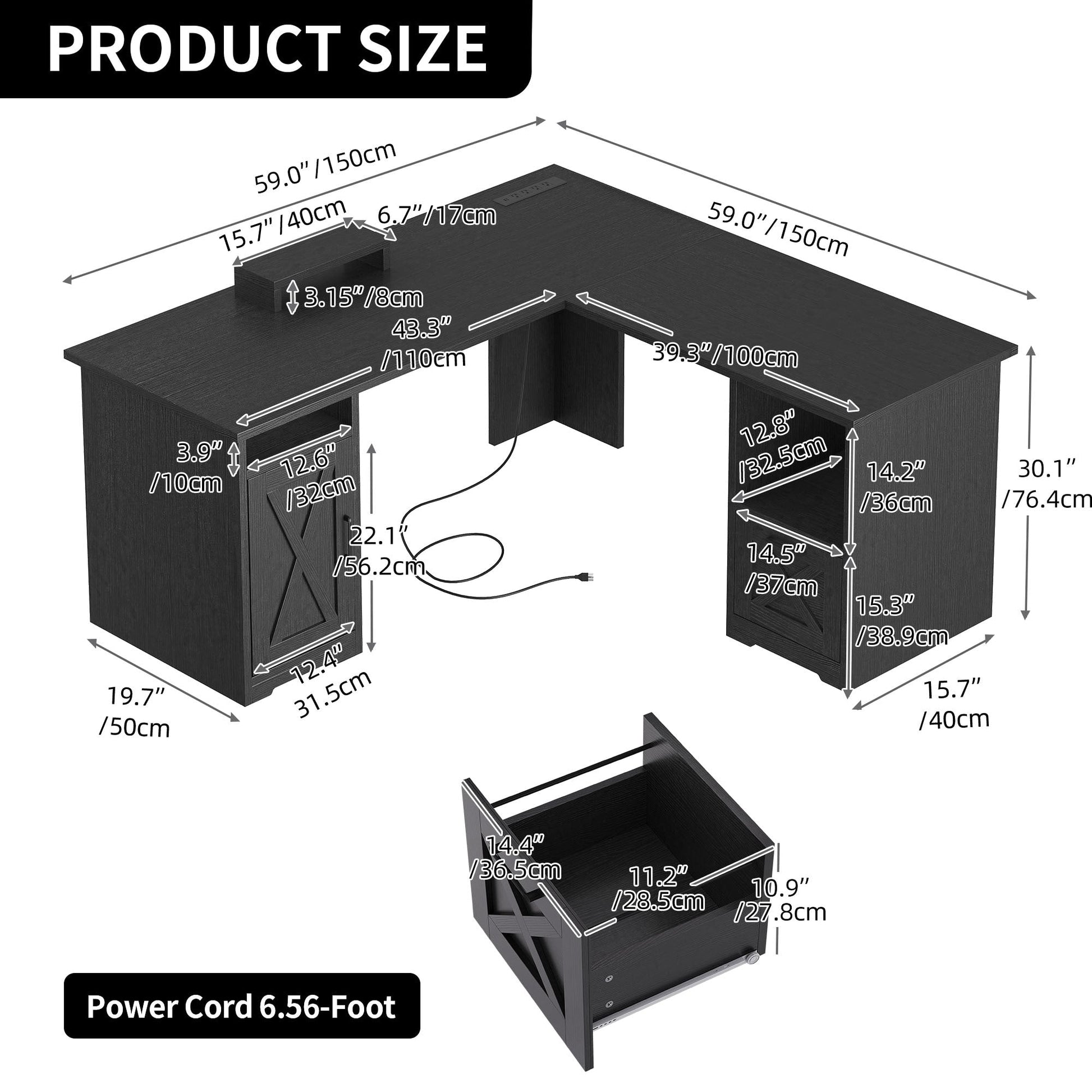 - 1. Rechargez vos appareils en toute simplicité grâce à ce bureau en L avec tiroirs. Il est équipé de 2 ports USB, de 4 prises de courant et d'un cordon d'alimentation de 2 m pour que votre ordinateur, ordinateur portable, téléphone, tablette, imprimante et console de jeu restent branchés et prêts à l'emploi.