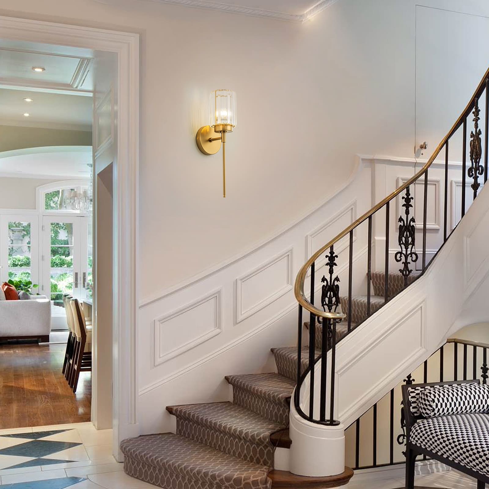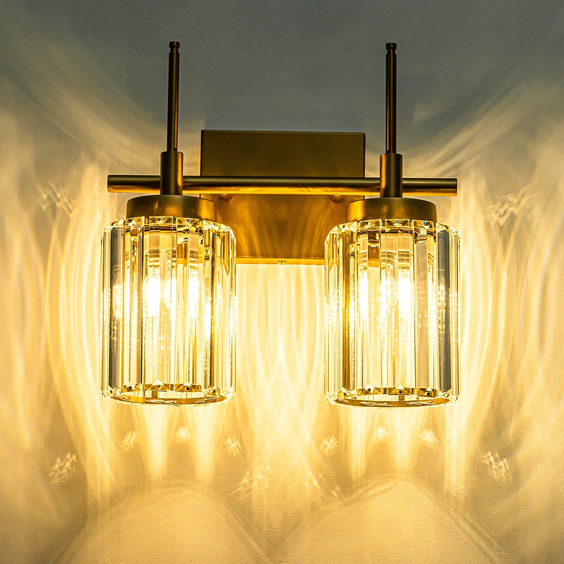 Applique murale moderne dorée à intensité variable, style cylindre glamour pour salle de bain, en cristal, pour meuble-lavabo