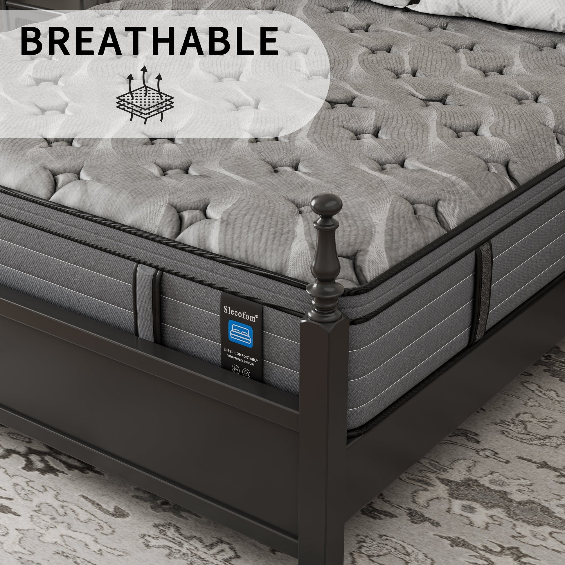 Matelas hybride Modland 14 pouces, plateau Euro - Mousse CertiPUR-US ignifuge pour soulager les maux de dos, lit simple/double/queen/king size