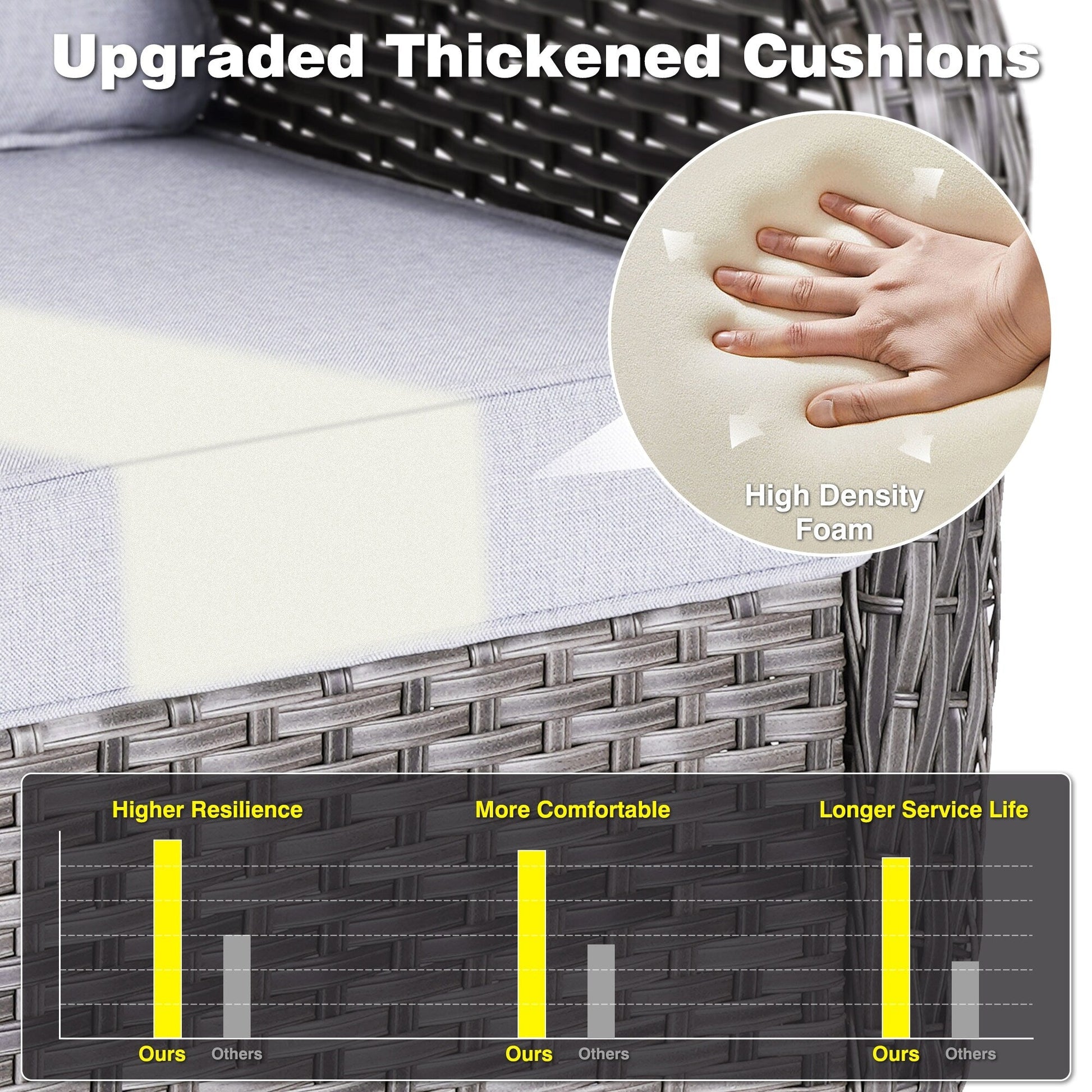 Créez une oasis de détente en plein air avec l'ensemble de salon de jardin OVIOS 5 pièces en osier. Cet ensemble comprend deux fauteuils, un canapé et deux poufs, tous fabriqués en résine tressée de qualité professionnelle, résistant aux intempéries et offrant une durabilité accrue. Les épais coussins d'assise en éponge offrent confort et détente, tandis que les dossiers hauts et les accoudoirs incurvés offrent un soutien ergonomique. Grâce à ses housses imperméables et faciles à nettoyer, cet ensemble est parfait pour votre terrasse, votre véranda, votre bord de piscine ou votre jardin. Choisissez parmi plusieurs coloris pour sublimer votre espace extérieur et l'adapter à votre style.