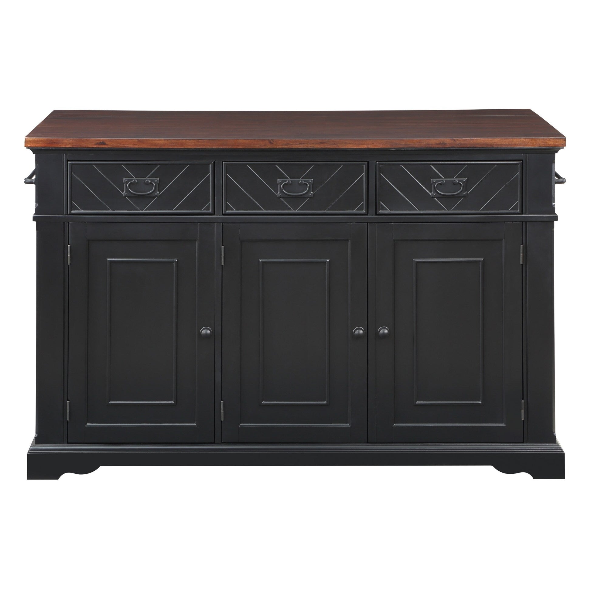 Ajoutez la chaleur et le charme du style campagnard à votre intérieur grâce à notre îlot central de cuisine. Grâce à ses 3 tiroirs, vos ustensiles sont à portée de main. Rangez vos grandes casseroles, bols ou appareils électroménagers dans notre spacieuse armoire à trois portes avec 2 étagères réglables. Rangez vos plaques à biscuits et planches à découper grâce aux étagères verticales pratiques. Les petites épices sont exposées et à portée de main grâce aux étagères extérieures situées juste sous un porte-serviettes bien positionné. Fabriqué en bois massif et placage, il présente une finition peinte en 8 étapes pour une durabilité accrue. Livré en trois cartons, assemblage requis.