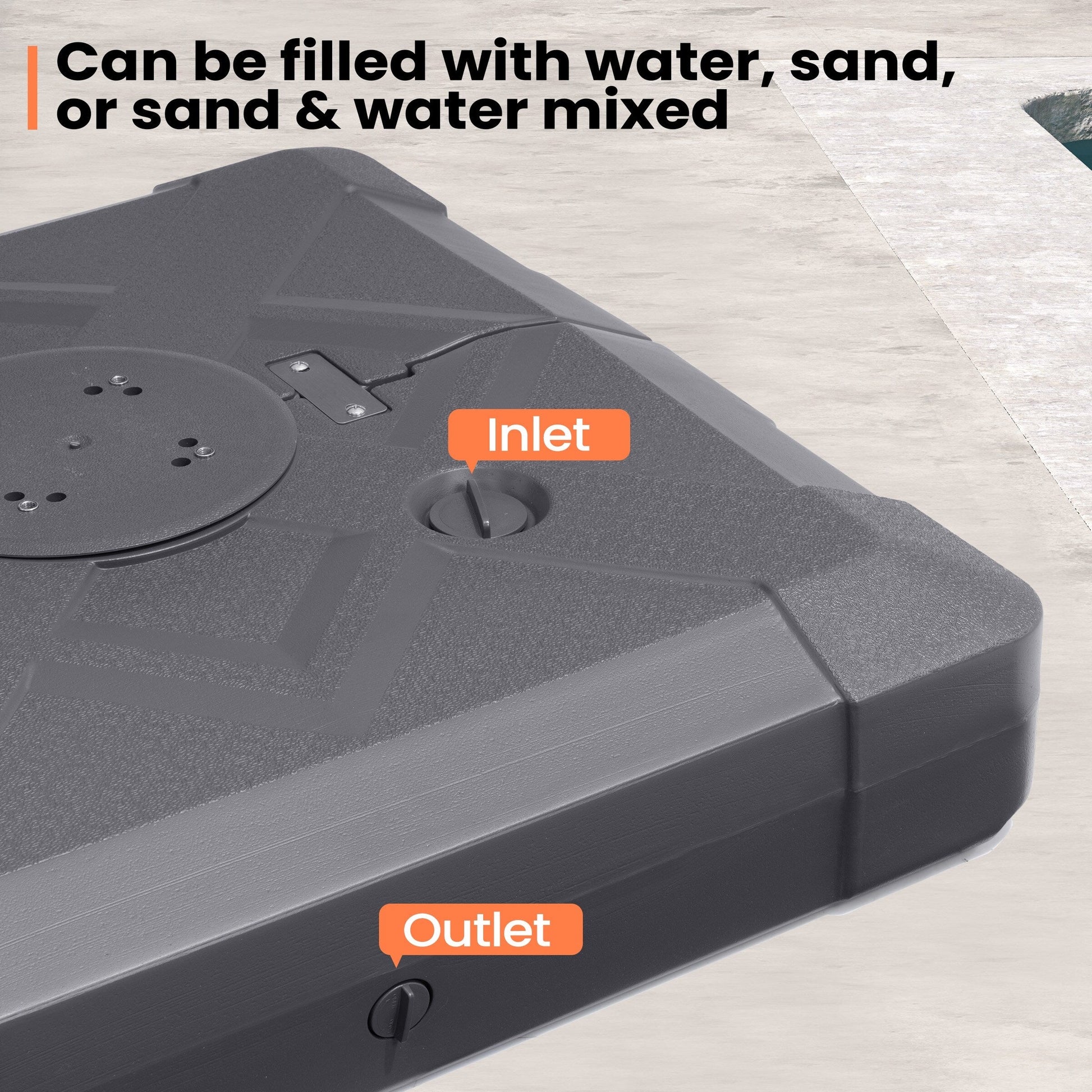 Sécurisez votre espace extérieur et donnez un aspect 3D grâce à ce pied de parasol déporté de 100 kg avec roulettes de Pellebant. Ce poids peut être rempli d'eau ou de sable pour plus de stabilité et de soutien. Il empêche votre parasol de s'envoler par temps venteux.