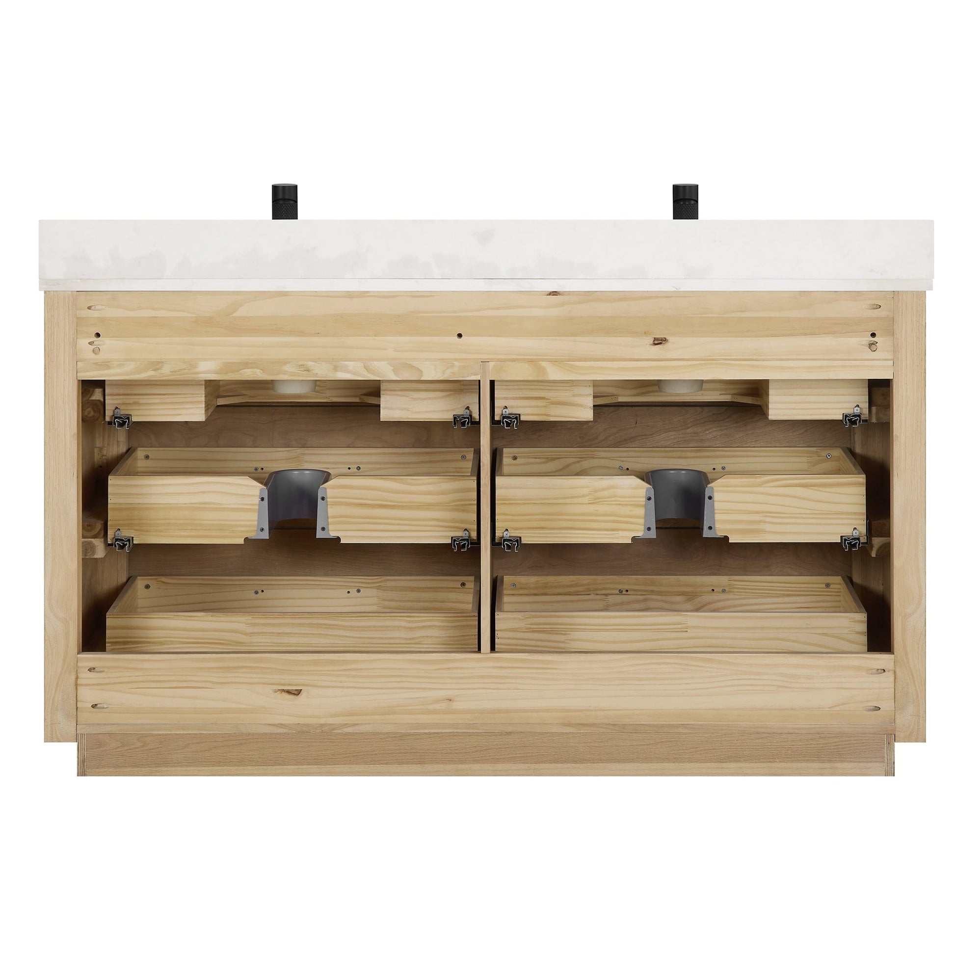 60 pouces - Six tiroirs à queue d'aronde robustes à fermeture douce sont dotés de cloisons intégrées pour un accès facile à tous vos articles de toilette.