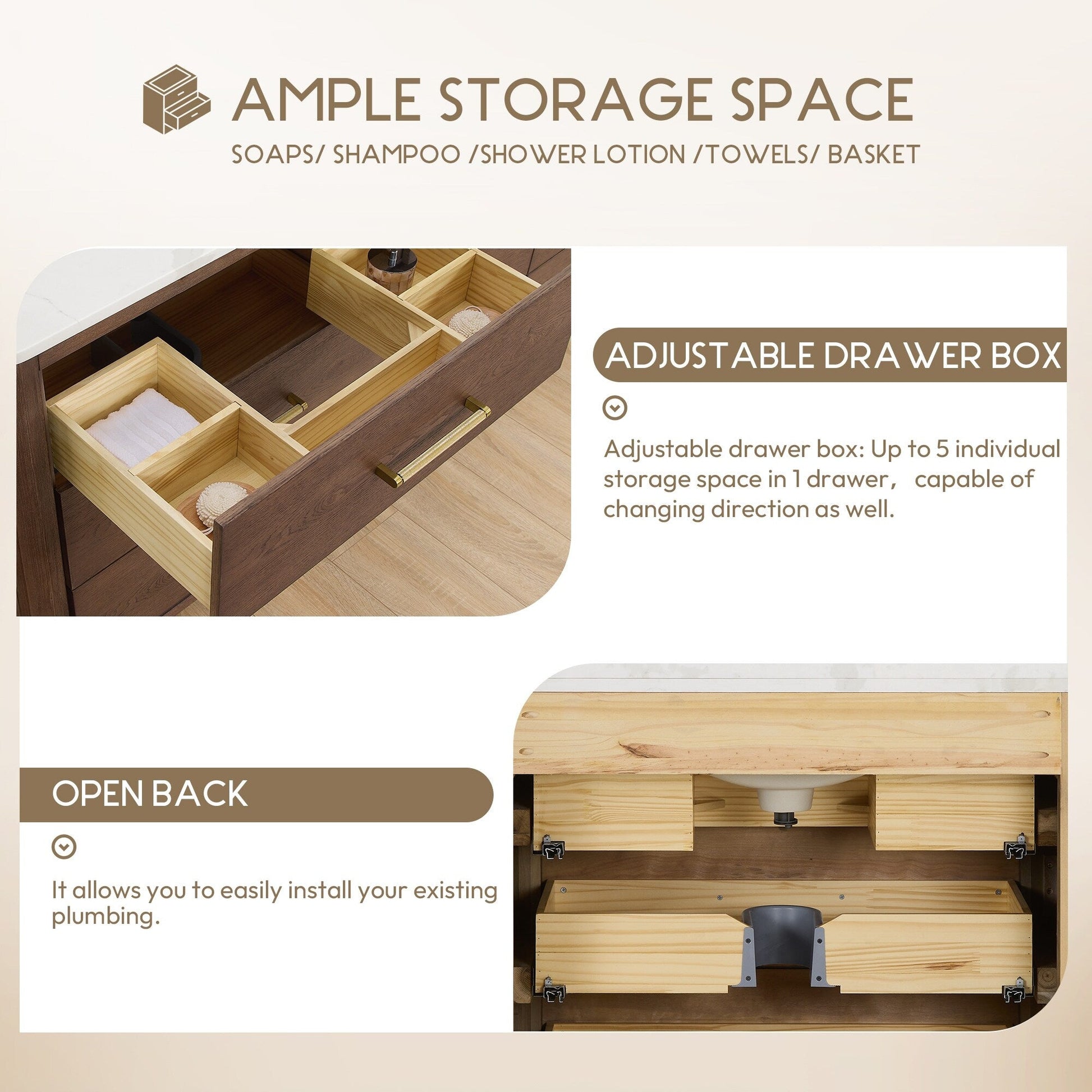 72 pouces - Six tiroirs à queue d'aronde robustes à fermeture douce sont dotés de cloisons intégrées pour un accès facile à tous vos articles de toilette.