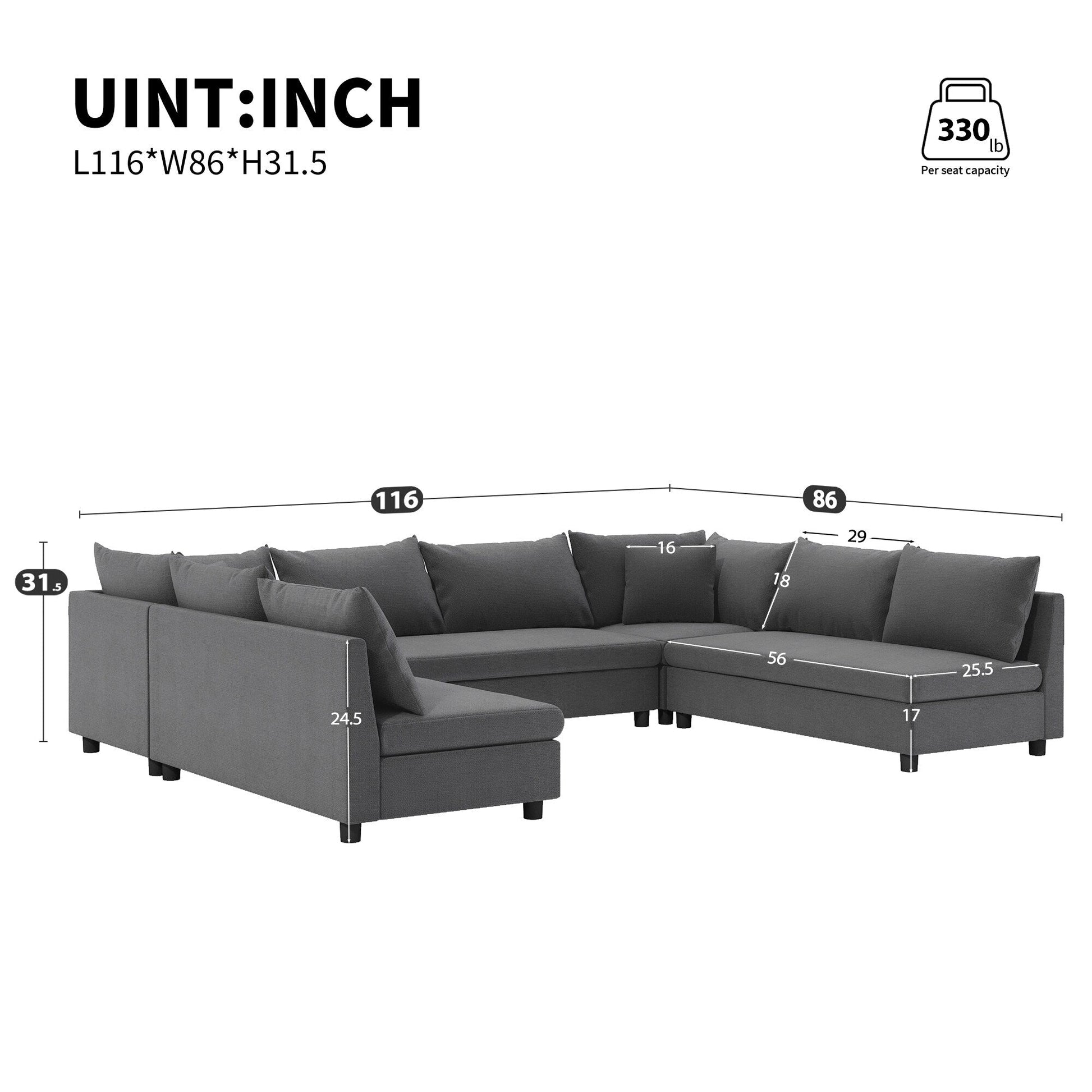 Canapé sectionnel, ensemble de canapé réversible en chenille en forme de U, combinaison libre, canapé convertible surdimensionné 8 places