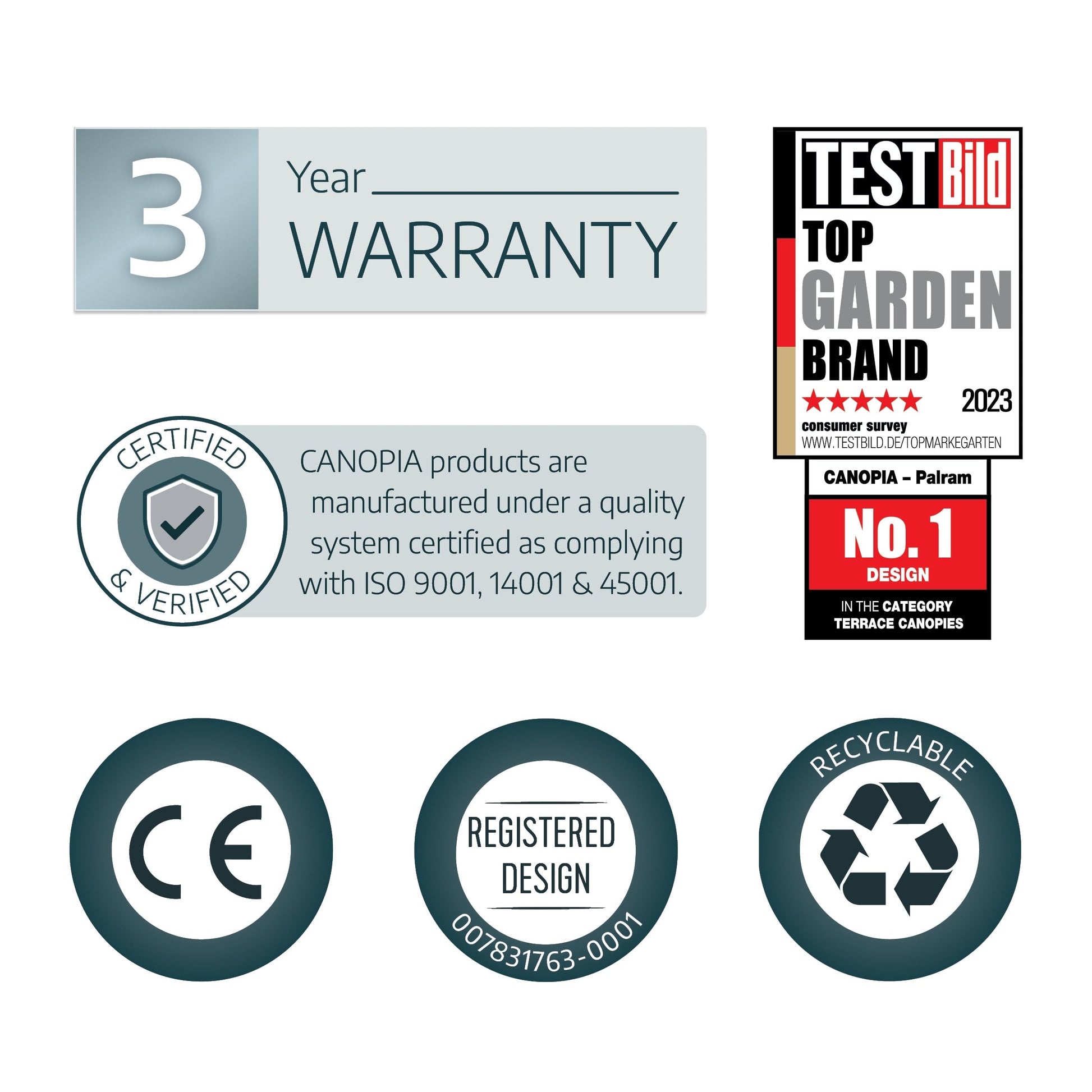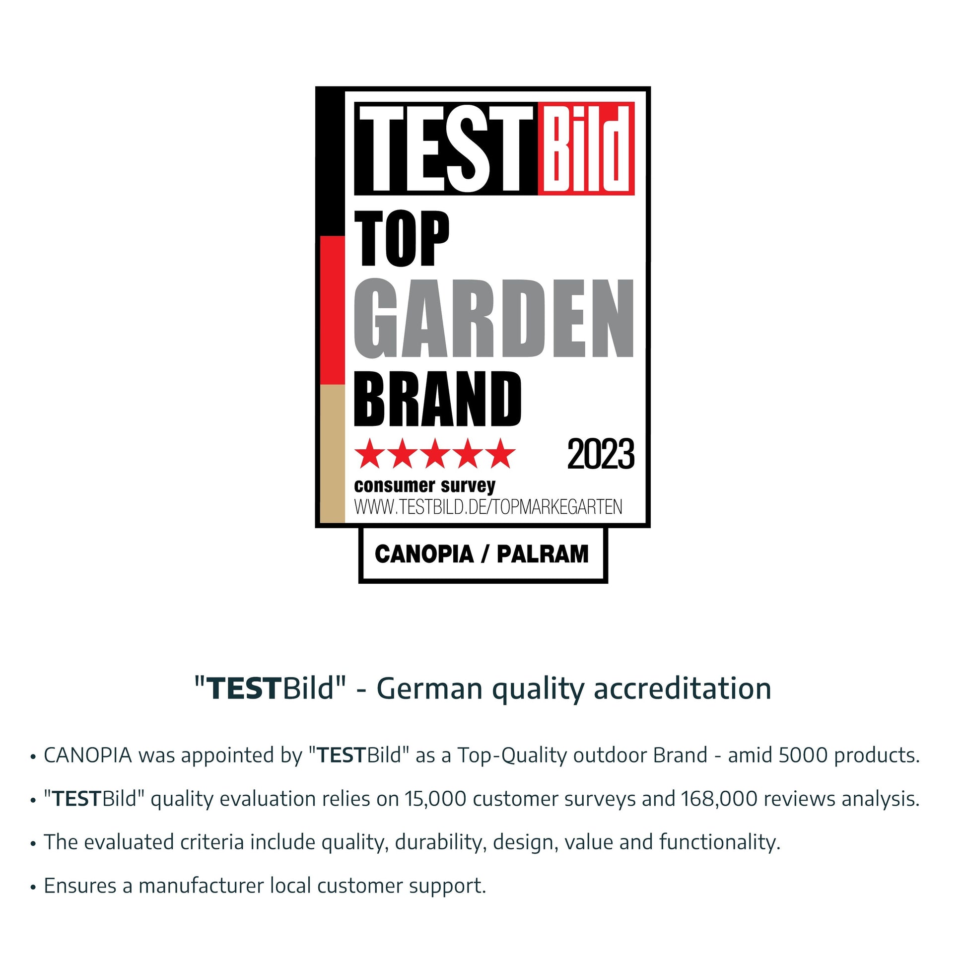- Résistance aux intempéries toute l'année : Résistant au vent, à la neige et à la grêle. Testé pour résister à des vents allant jusqu'à 120 km/h et à 17 kg/m² de neige.